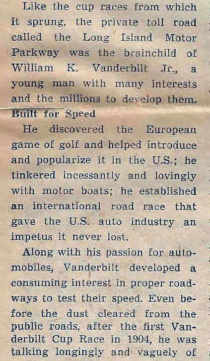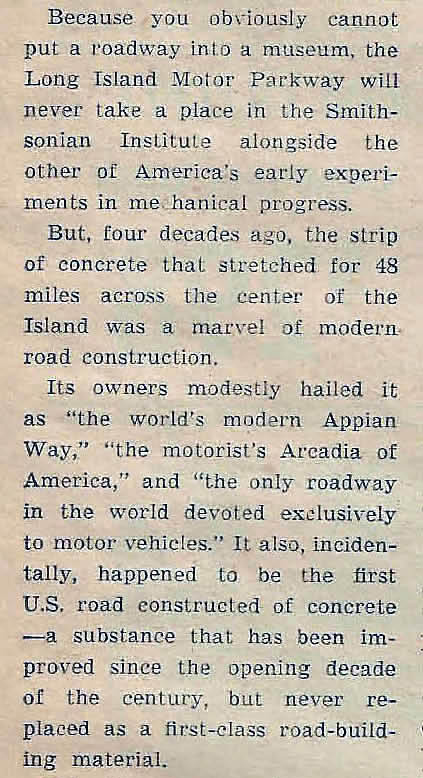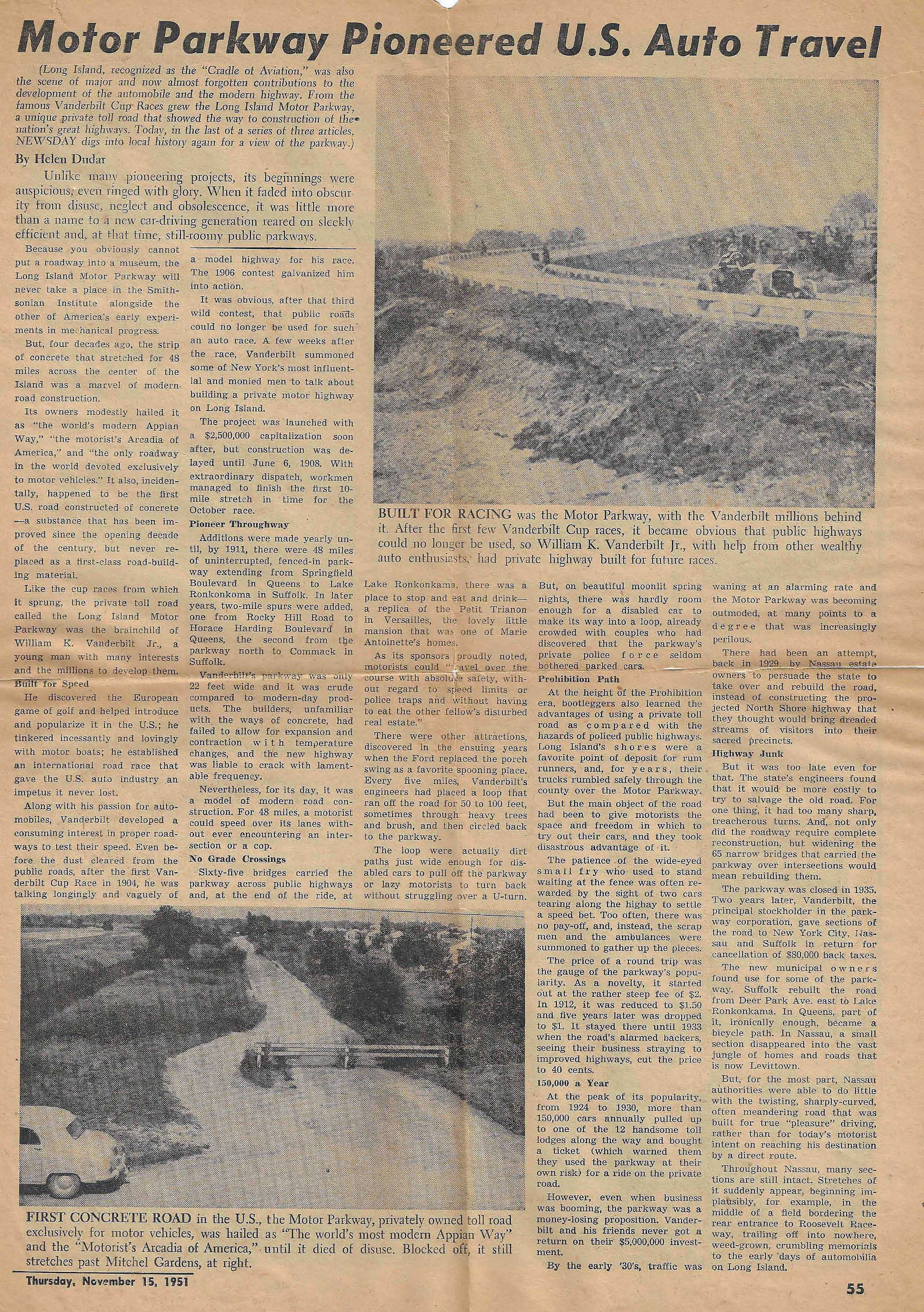 Newsday, November 15, 1951: Motor Parkway Pioneered U.S. Auto Travel
