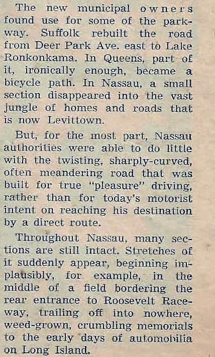 Thirteen years after the Motor Parkway closed, Helen Dudar wrote this article on our favorite parkway for the November 15, 1951 issue of Newsday.