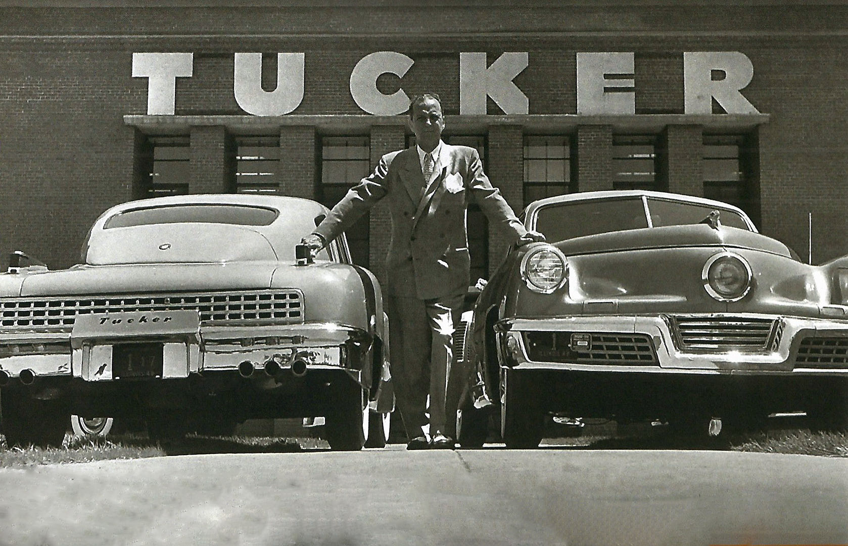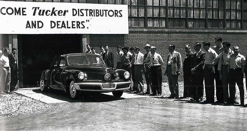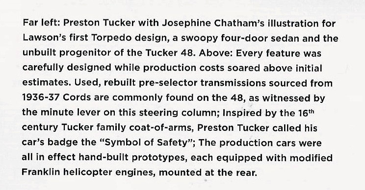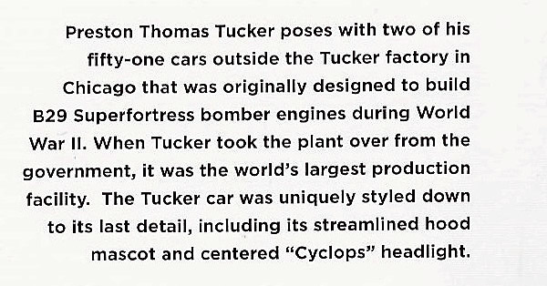 The factory pose in between 2 new Tucker cars is the real gem: a throwback to the post-war era (I was 2). Enjoyed that photo - looks like the suit my father wore to work every day at his NYC office!