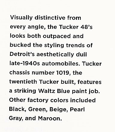 An article "The Birth & Legacy of the Tucker 48" by Hampton C. Wayt was featured in the 2018 Pebble Beach Concours d'Elegance program.