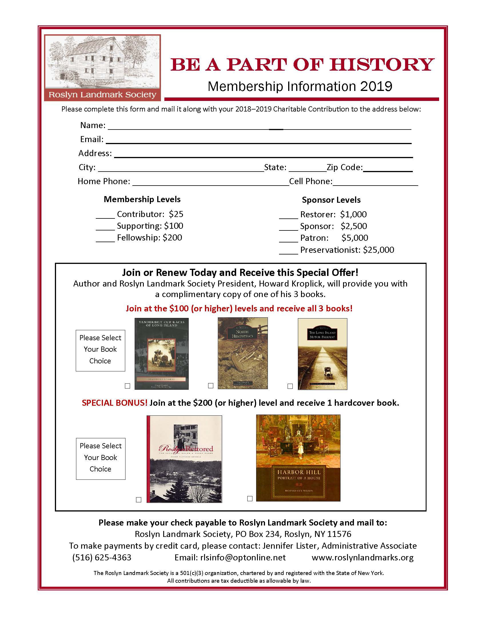 Please indicate your selected book(s), make your check payable to Roslyn Landmark Society and mail to: