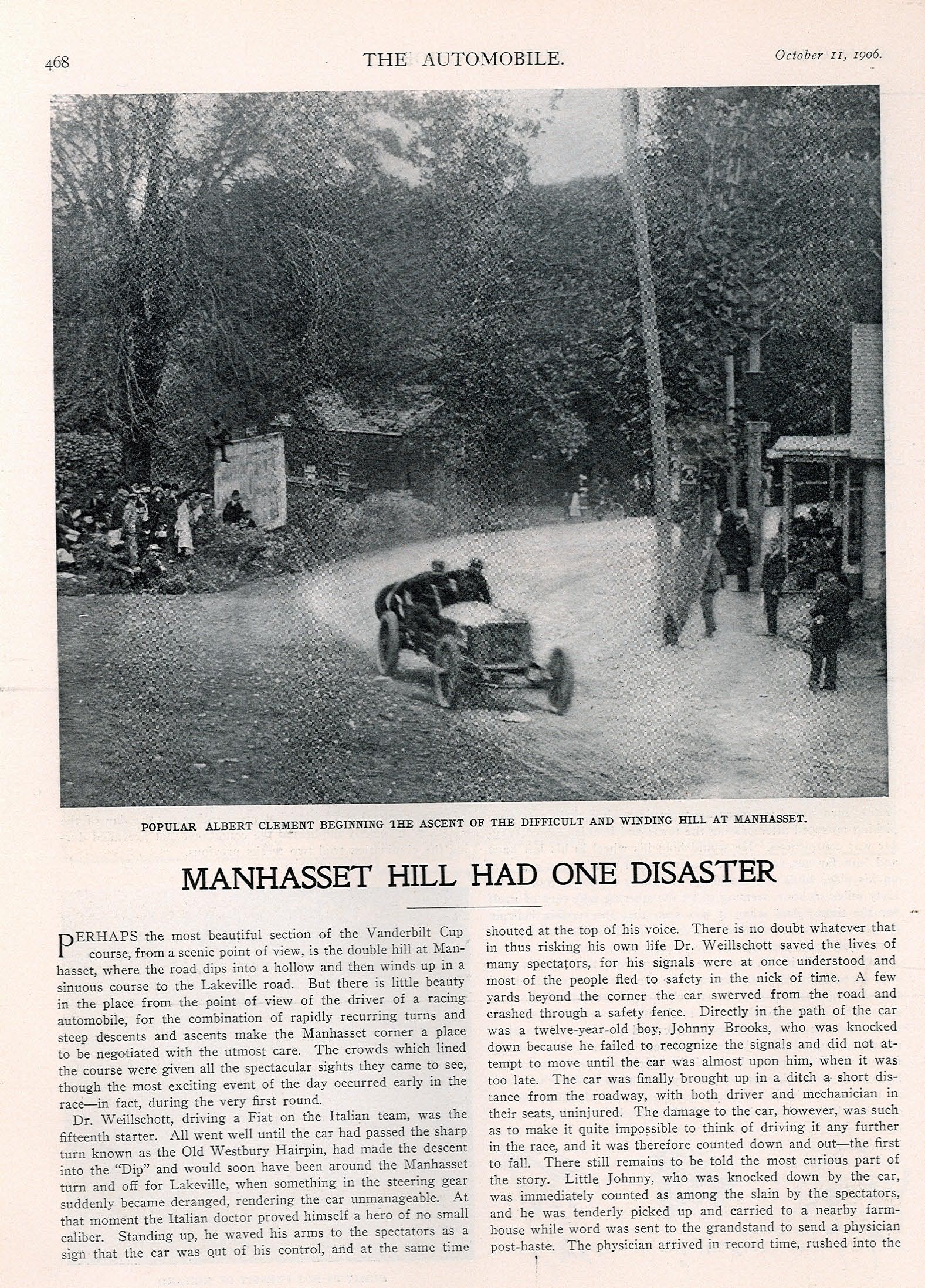 The automobile trade journals reported the dangers associated with Manhasset Hill.
