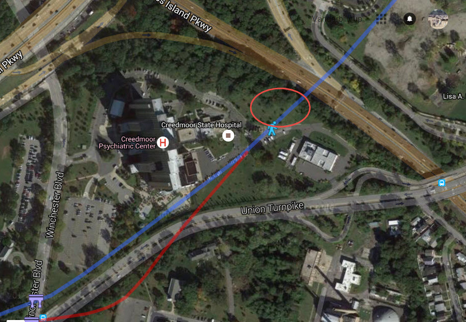Great discovery Eric. Was the first Creedmoor photo taken just beyond the curb line? If so, I found this strip lines up directly with the right of way. Sending Howard a photo.