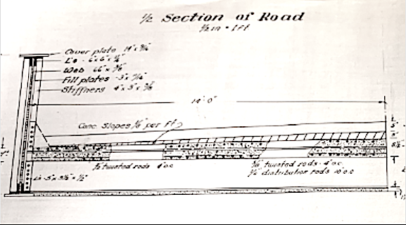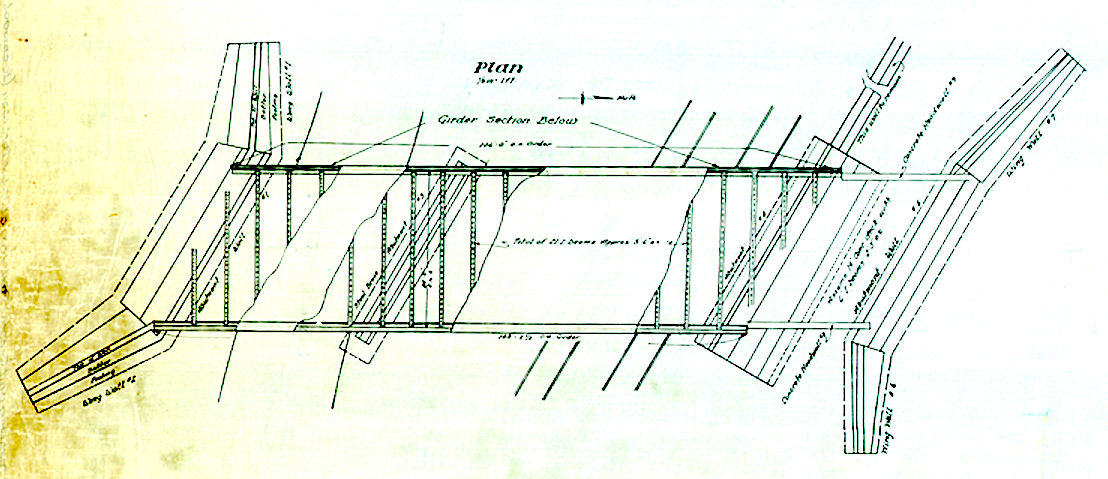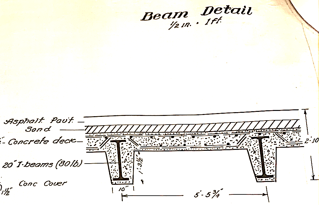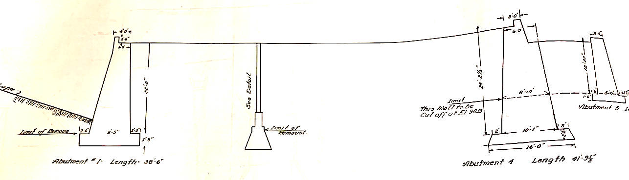 The bridge was not slated to be removed in the original 1938 plans that Nassau County developed for the disposition of the Motor Parkway. However, the Powell Avenue bridge, #37, was to be removed. (Nassau County Public Works)