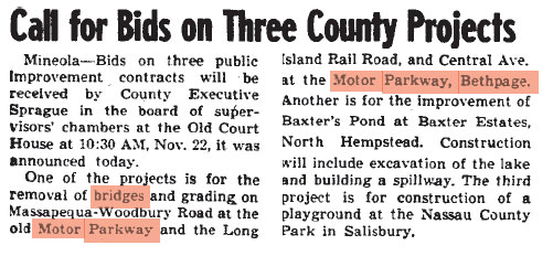 Art Kleiner has explored recently obtained surveys and maps from the Nassau County Department of Public Works to focus on the removal of the largest bridge built for the Motor Parkway.