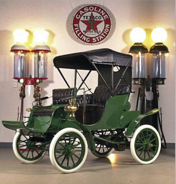 The 1903 Pierce Stanhope followed the Motorette and was built on light frame tubing featuring a folding top. The Stanhope was similar to the Motorette as its Pierce-made engine was mounted directly under the driver’s seat. The four-passenger automobile included two hidden folding seats in the front and has two forward speeds and a reverse gear. The George N. Pierce Company produced 50 Stanhopes in 1903, and sold them for $1,100. The Stanhope, one of the earliest Pierce models, paved the way for later, larger models, the Arrow and Great Arrow.