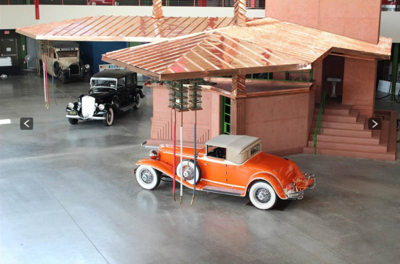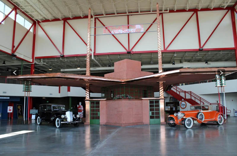 After obtaining rights to build the station from Wright's drawing, the Buffalo Filling Station was constructed in 2014 as a one-of-a-kind installation to complement the automobiles, motorcycles and bicycles on display at the museum.