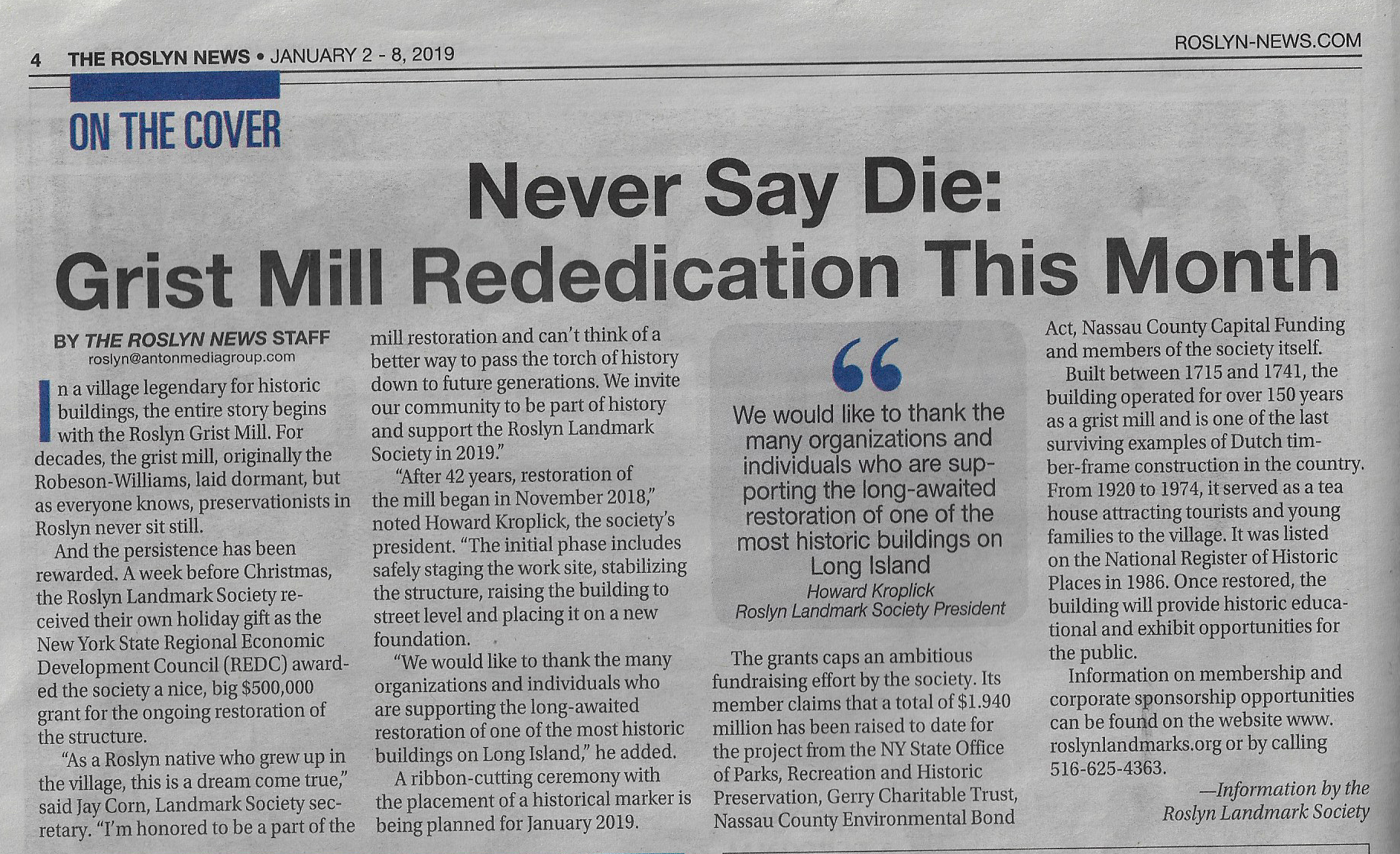 Roslyn Landmark Society in the News (Updated: 2/21/2019)