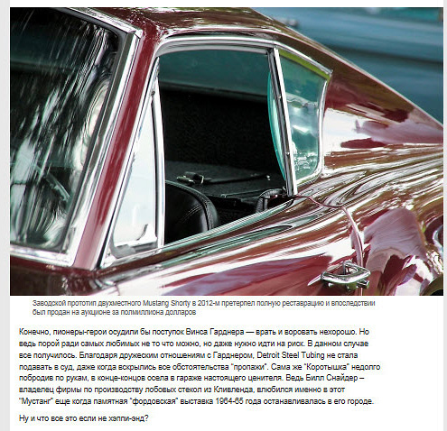 Dmitri Shvetsov has forwarded a link to an article on the Mustang III posted on a popular Russian automobile blog TrunkMonkeys. Can anyone translate the captions?