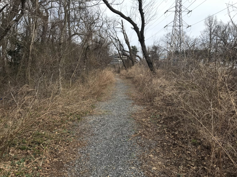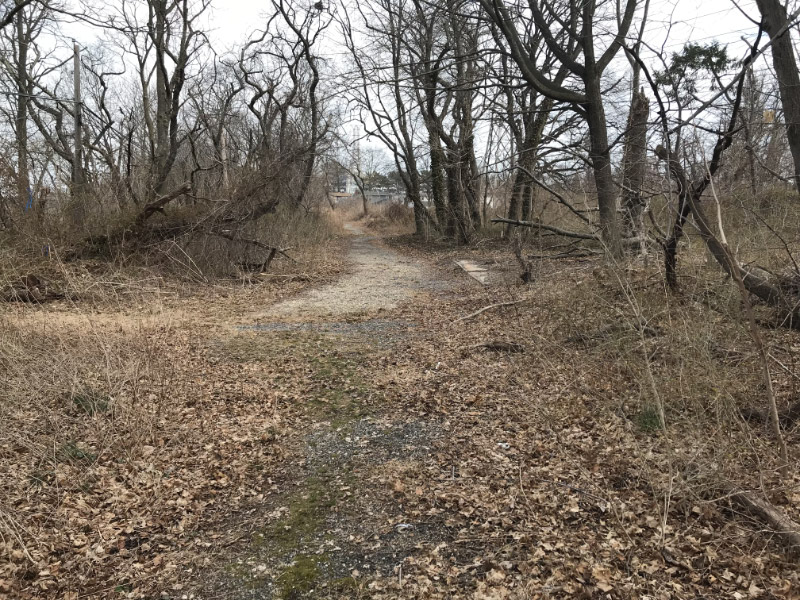 Different posts align the LIMP in this stretch - square shaped holes that held wooden barriers along both sides of the bridge embankment.