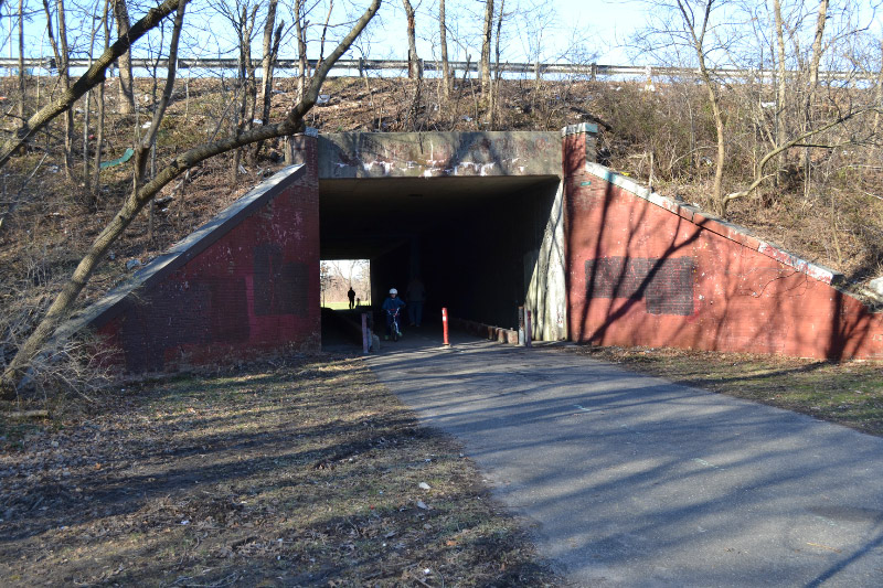 Dave Russo: As everyone knows, the NYC Parks Department maintains the Brooklyn Queens Greenway section on the Motor Parkway from its beginning next to Francis Lewis Blvd /Cunningham Park to Winchester Blvd next to Alley Pond Park. Going from west to east, the preserved path takes a left hand turn in Cunningham Park to navigate to a tunnel that goes under the Clearview Expressway.