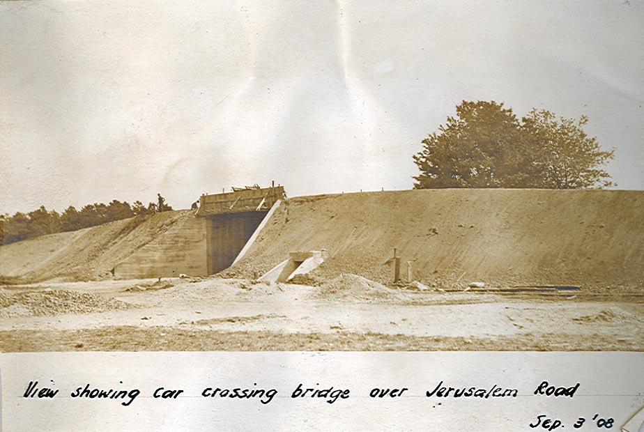 The bridge as seen on September 3, 1908. The road under the Motor Parkway then was called Jerusalem Road, often confused with Jerusalem Avenue.