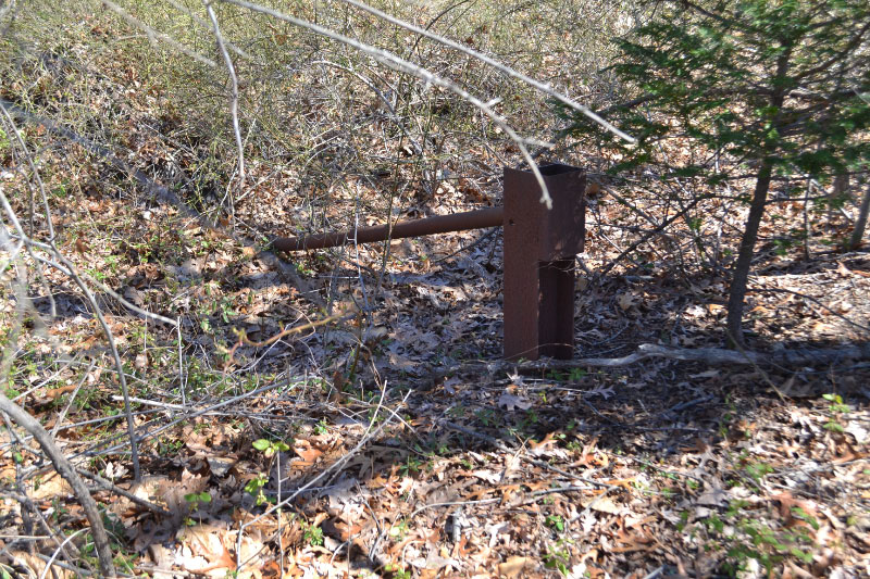 This was interesting - some sort of gate piece? This post sticking out of the base looks like it was adjustable up and down and it extends into the ground here.