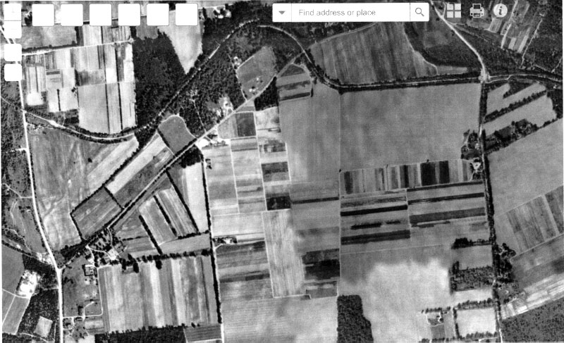 As described… within little square box, just the other side (North) of the large white rectangular white box, is my farmhouse… that larger white rectangular box being a cultivated farm field. Further, the South saide of the Woods being the Southern boundary of St Rose. Now, to complete the search, moving along Ruland Rd should then show the LIMP to iots Left or North side til the LIMP then crosses over Ruland, picking up the LIMP towards the beginning of Colonial Springs Road might havethe odd artifact considerng the remoteness. In any case, thanks again.