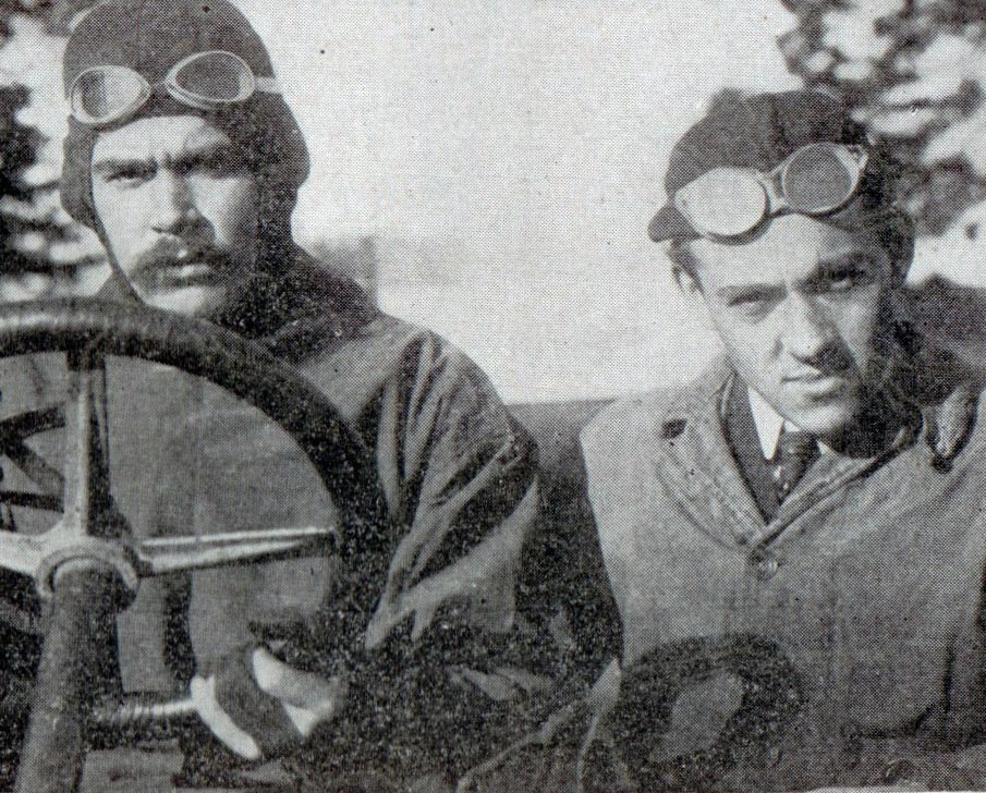 A close-up of William Luttgen and his mechanician Joe Marx preparing for the race.