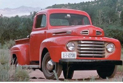The fire truck looks like it was originally a1948 Ford F-1 pickup.