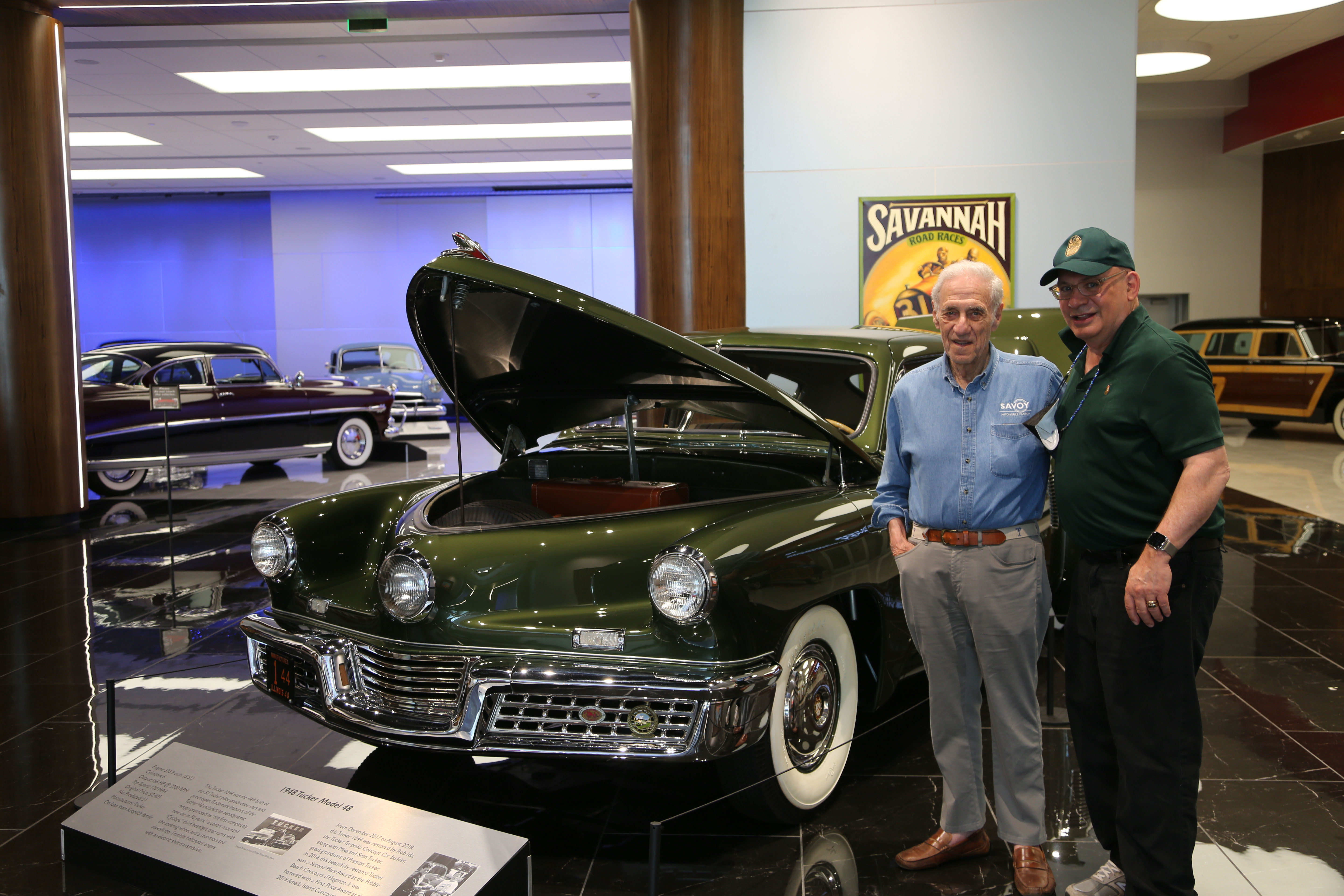 Tucker 1044 has ended its five month exhibit run last week at the Savoy Automobile Museum, while Chrysler's Chrysler joined Savoy's Art Deco exhibit.