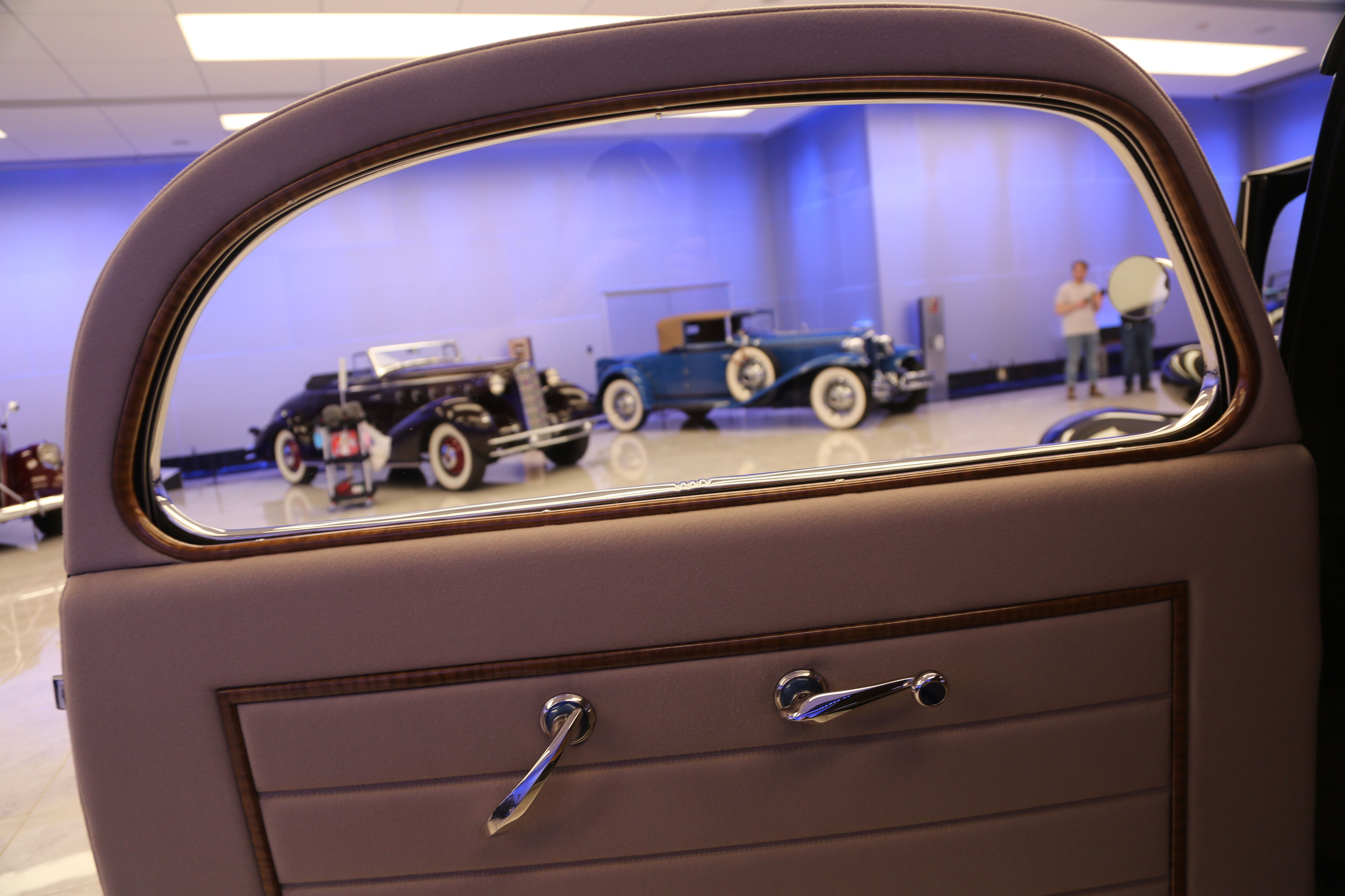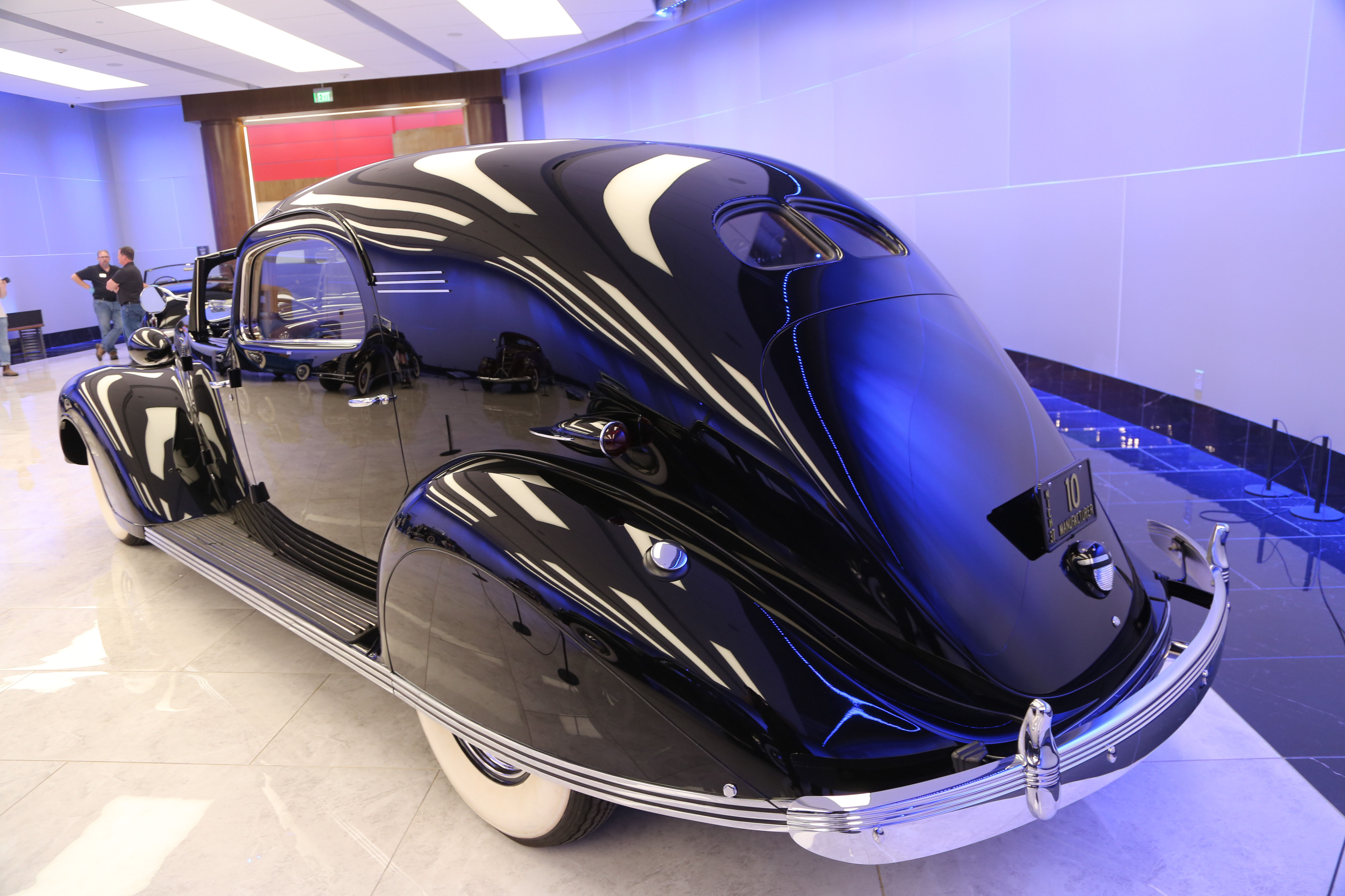 Car collector Jon Oscher and Howard Kroplick during the final hour of the Tucker 1044 exhibit.