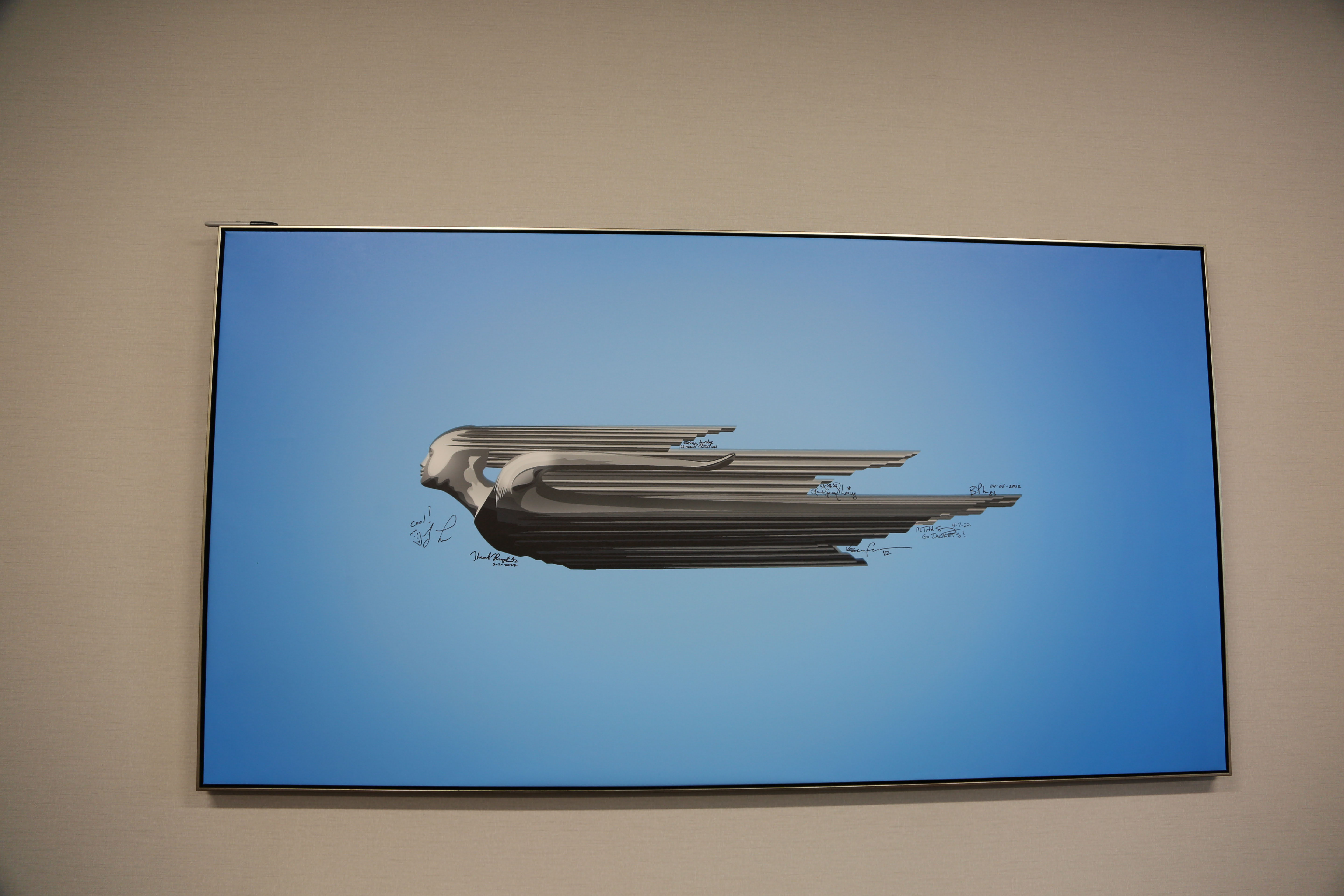 This "signing" poster is hanging in Savoy's main conference room including the signatures of Jay Leno, Ken Gross and Governor Brian Kemp.
