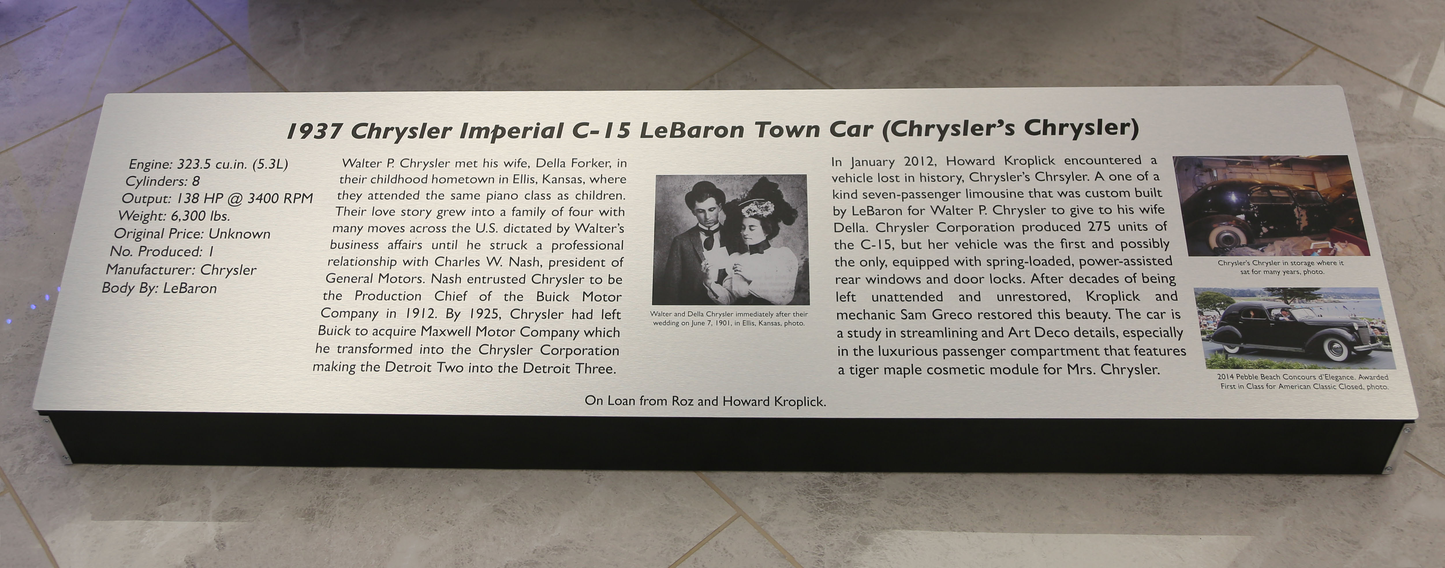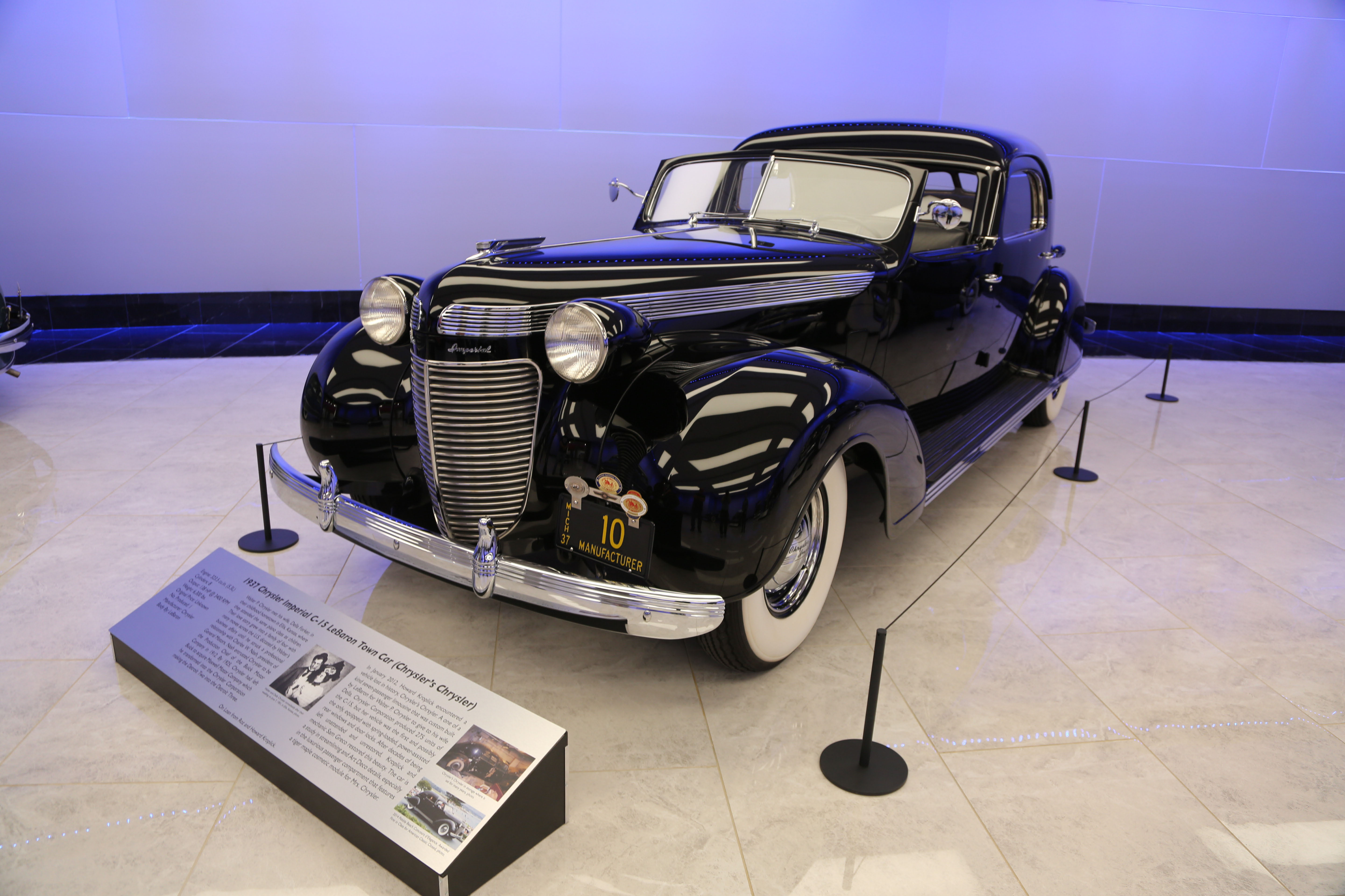 The 1937 Chrysler Imperial C-15 LeBaron Town Car (Chrysler's Chrysler) has joined the Savoy's new Art Deco exhibit.