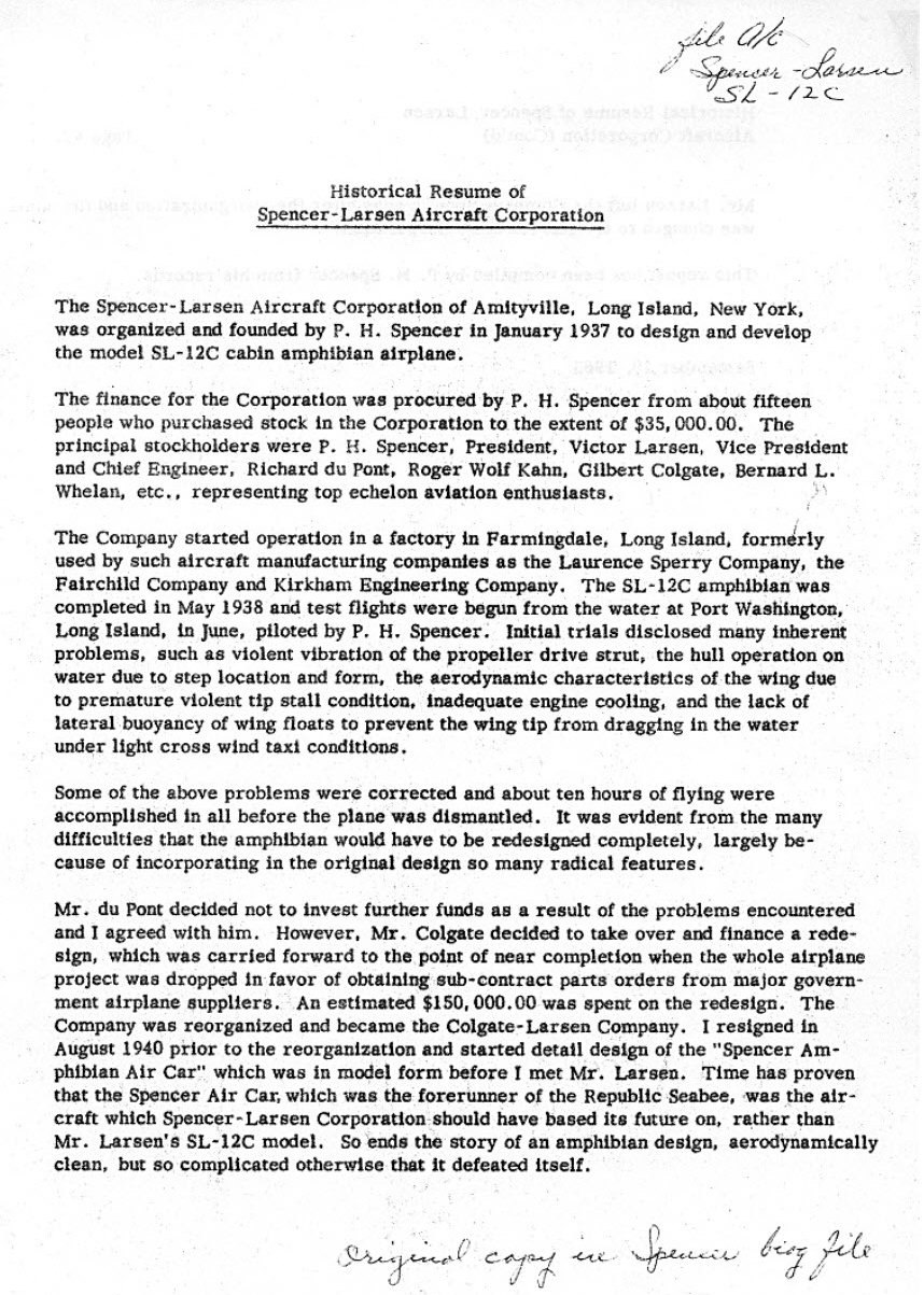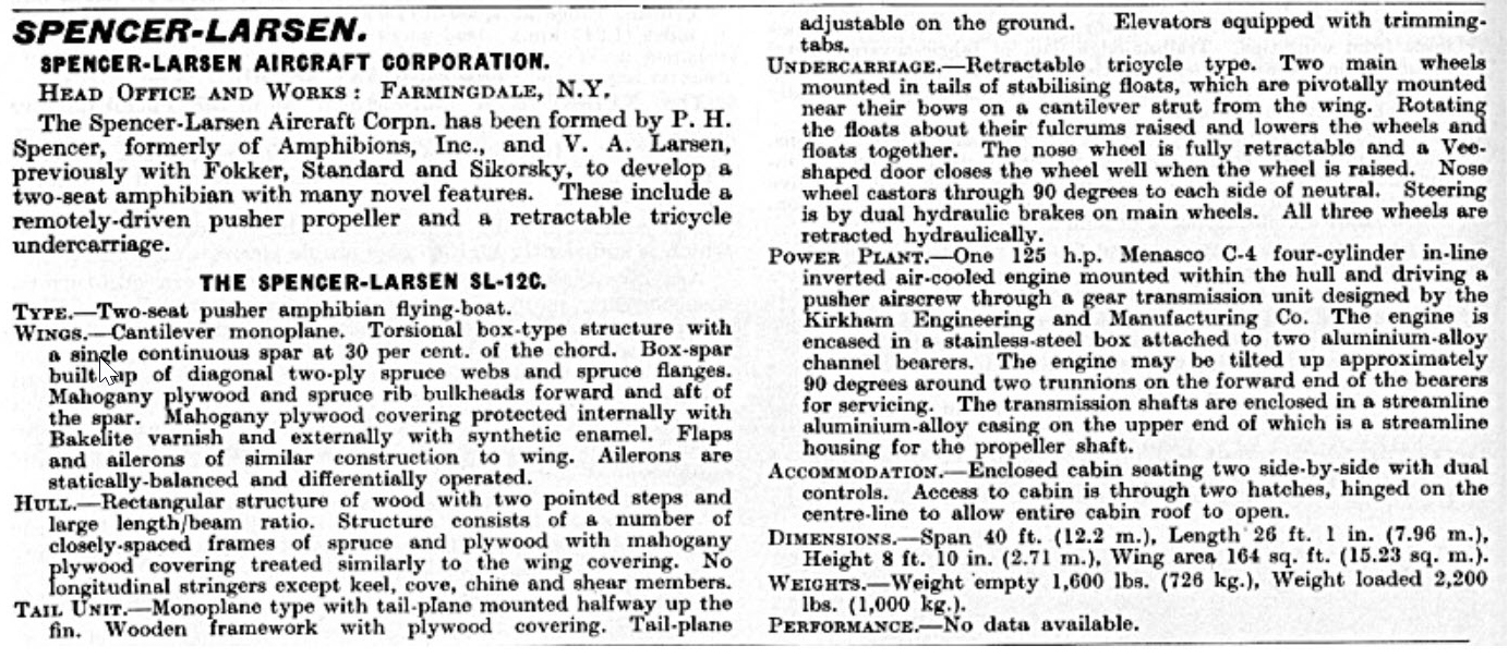 Flying Boat/Seaplane of the Week: Spencer-Larsen SL-12C Amphibian NX-20621