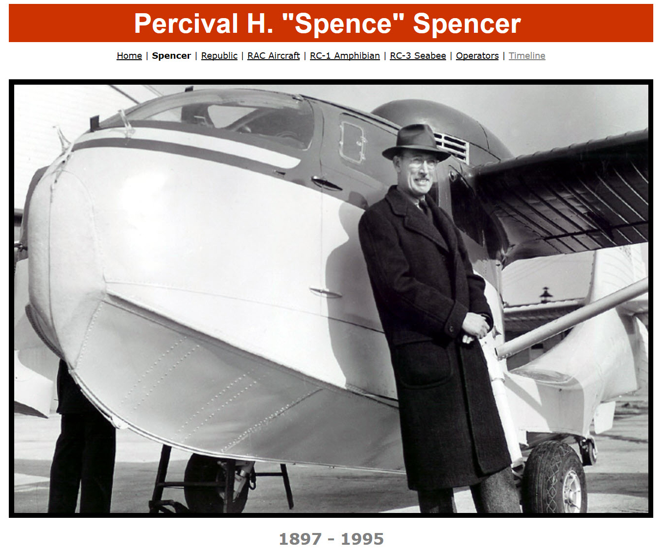 At the end of this news clip, Percival "Spence" Spencer can be seen wearing a suit next to his seaplane.