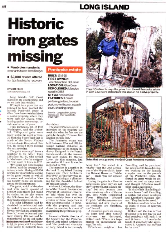Newsday reporter Scott Eidler has picked up the story on the Pembroke gates.
