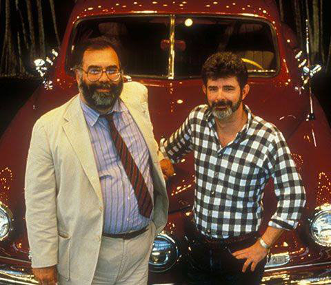 Francis Ford Coppola and George Lucas in front of Tucker 1037.