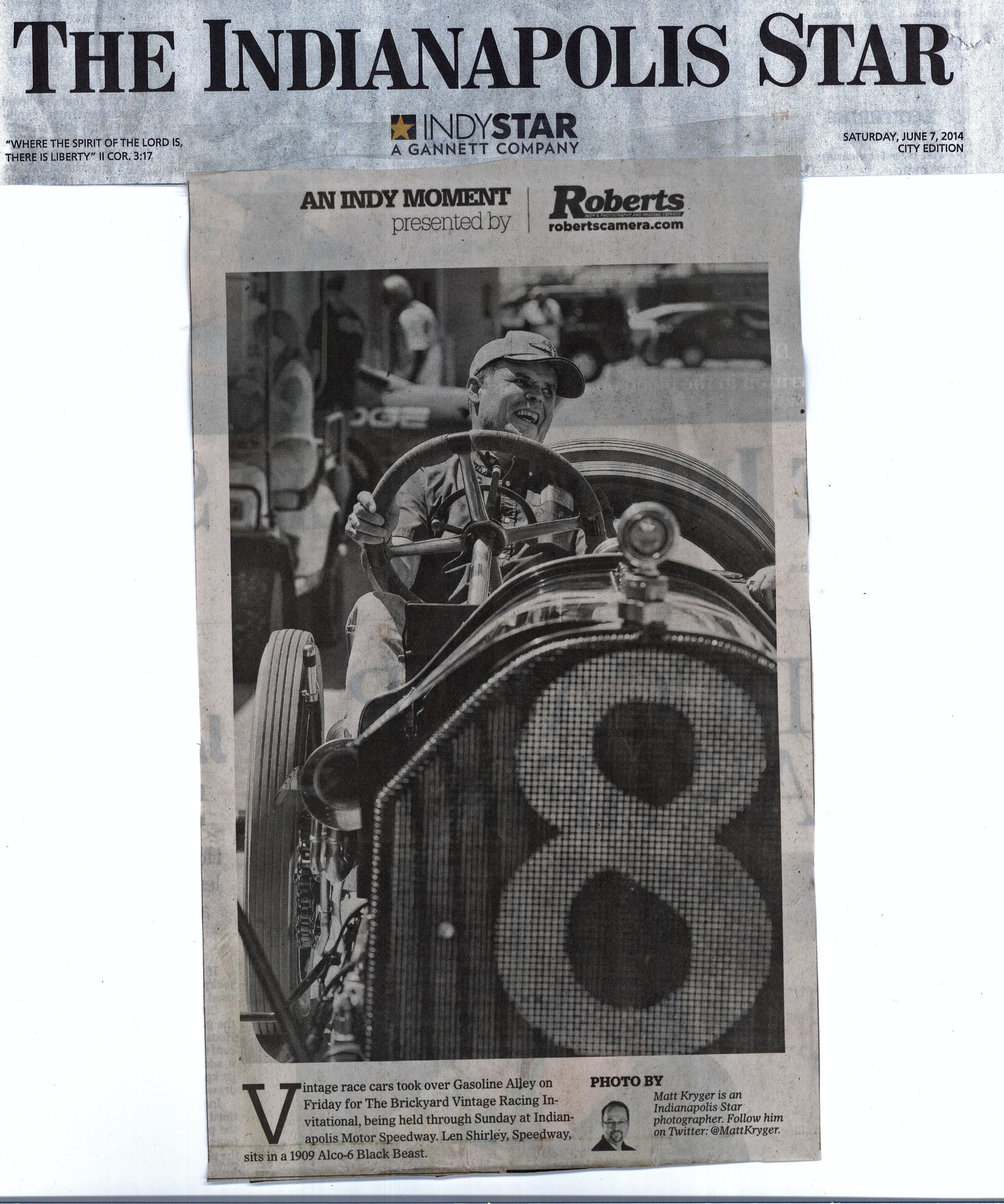 Len Shirley of Speedway in the Black Beast was featured in the Indianapolis Star.