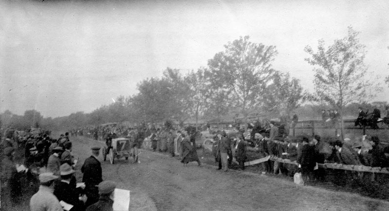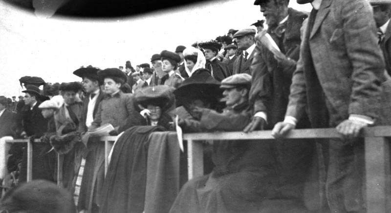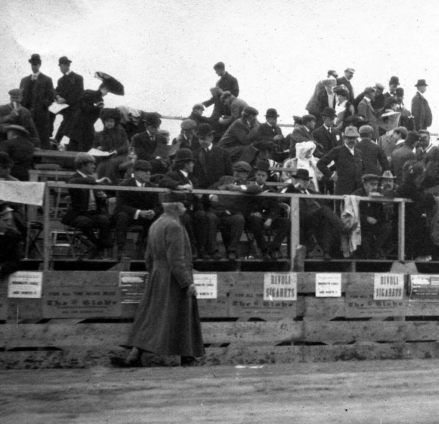 High society women and men made up a good portion of the spectators seated in the 1904 grandstand. The bearded gentleman (second from the right) was C. Gray Dinsmore, owner of the #9 Mercedes.