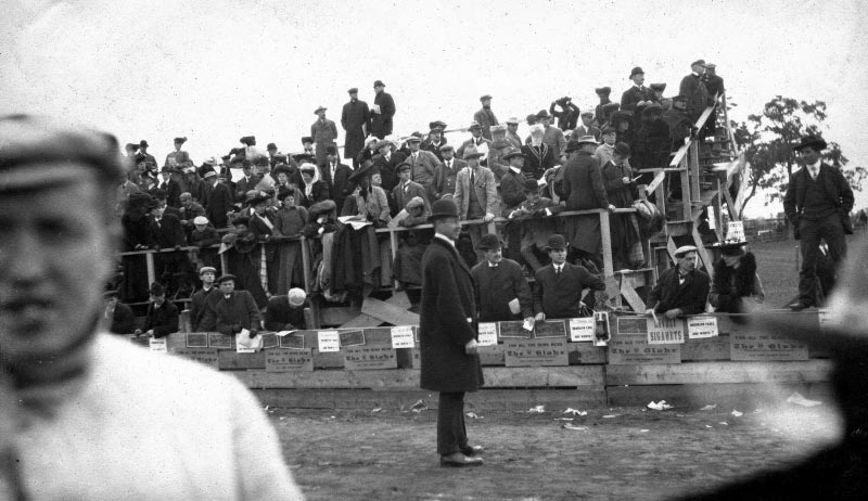 The officials' stand and press box. American Mutoscope and Biograph documented the race on the top of the press box in this film: