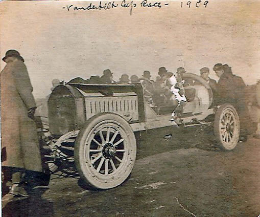 Fifteen cars raced in the 1909 Vanderbilt Cup Race held on October 30, 1909. The #2 American Underslung Roadster did not start due to a broken crankshaft. The race was run on a 12.64 mile course including 5.15 miles of the Long Island Motor Parkway. The winner needed to complete 22 laps of the course for a total of 278.08 miles. Remember to click on the photos to enlarge the image: