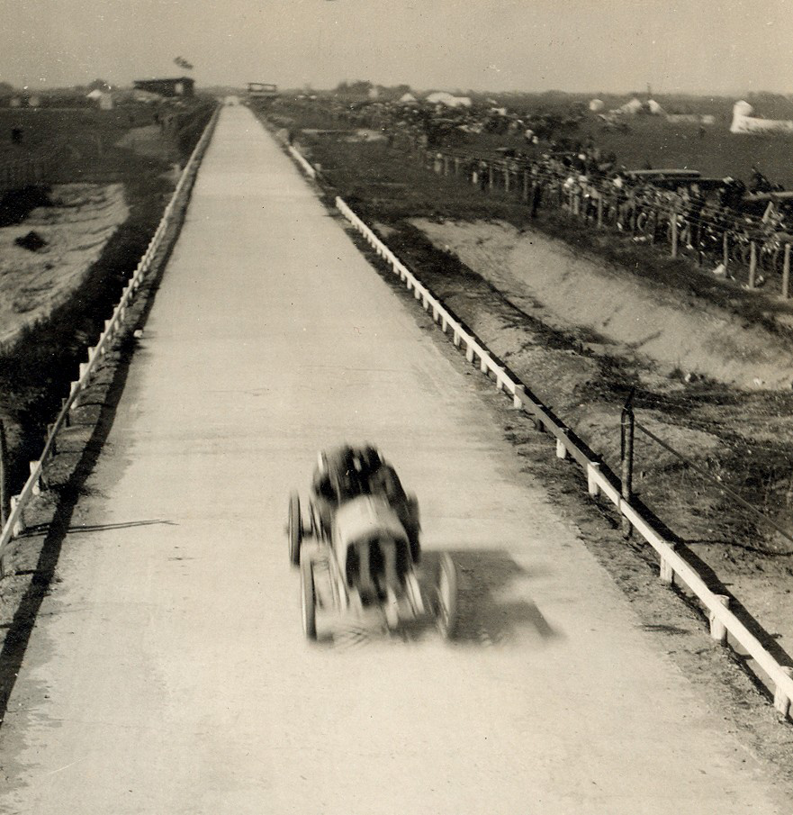 February 15, 2010 Update: The #11 National can be seen here during the race passing under the Jerusalem Avenue Motor Parkway Bridge. The Hempstead Plains grandstand and press box are in the distance in the background. Note the guard rails on both sides of the road- another pioneering feature of the Motor Parkway.