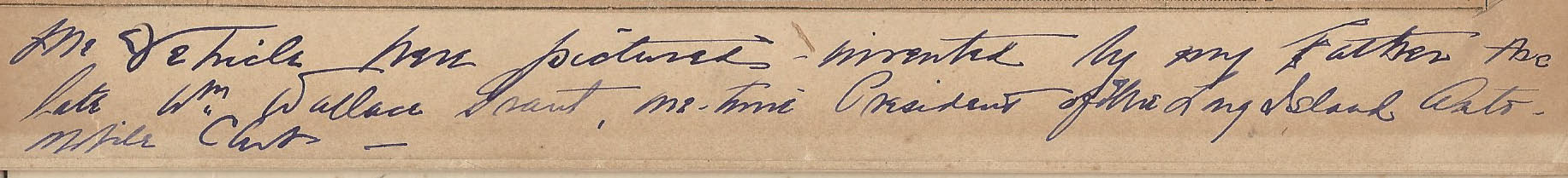 Note from Marion Grant: The vehicle here pictured invented by my Father the late Wm. Wallace Grant, one-time President of the Long Island Automobile Club.