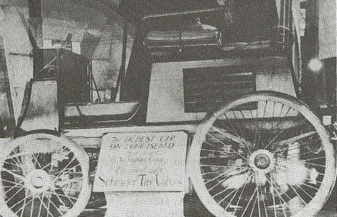 The Grant at the 1925 Schrader Tire Valve exhibit. The poster read "Oldest Car on Long Island".