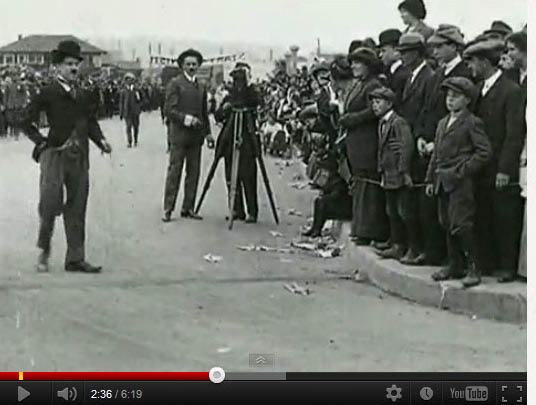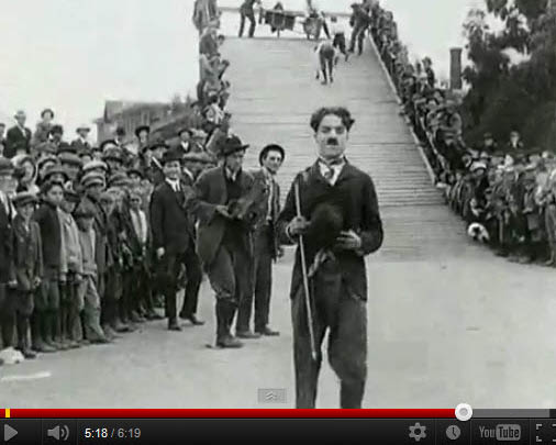 Check out how close the pushmobiles came close to Chaplin throughout the film.