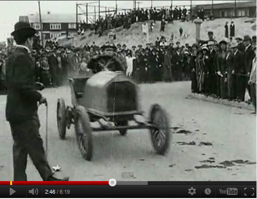 Although these races were hardly newsworthy, the recording of the races made film history. The six-minute film made for Mack Sennett's Keystone Film Company was the first time the public saw Charlie Chaplin in his "Little Tramp" character and an audience's reaction to him.