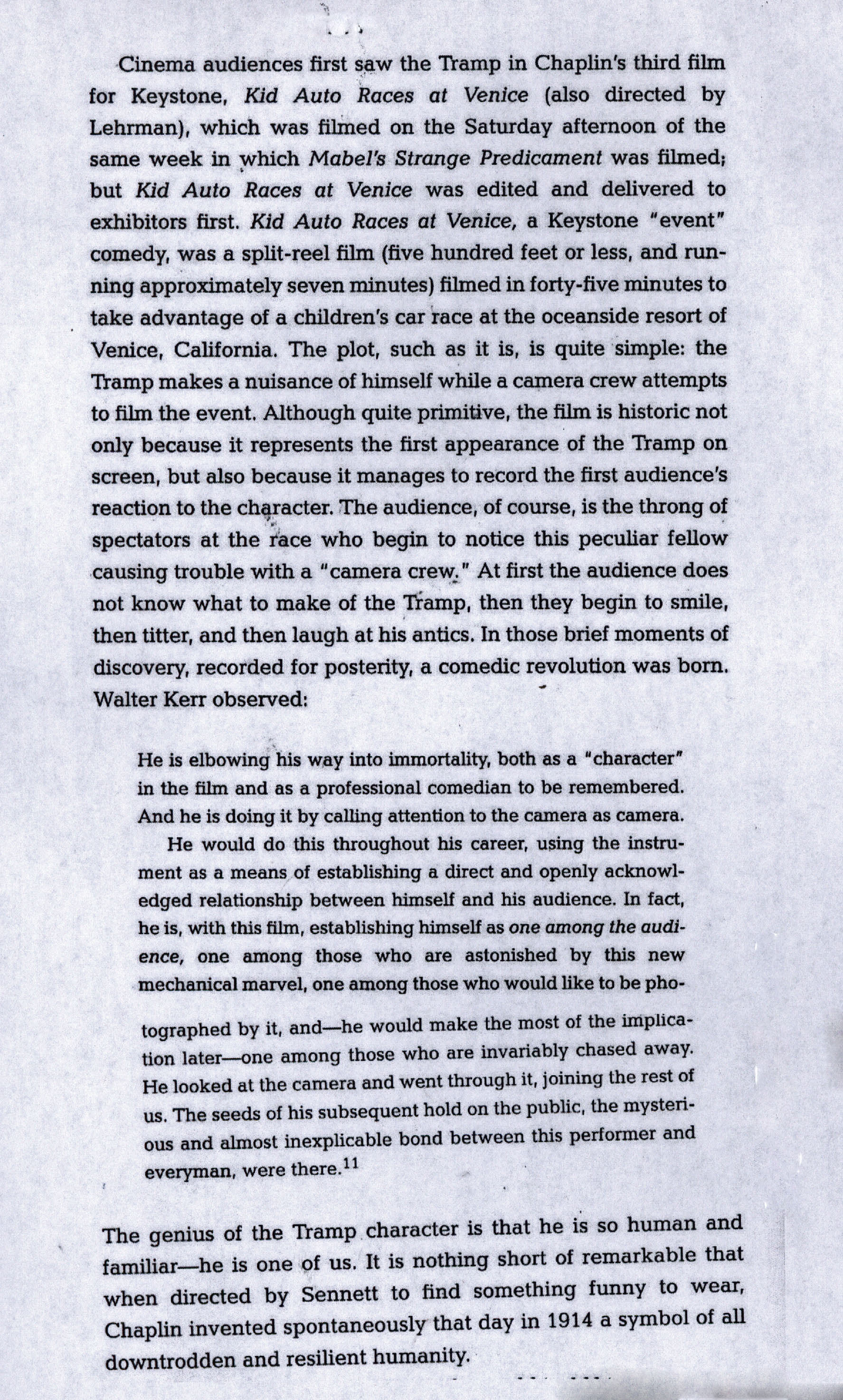 The significance of this film was described in the book "Chaplin-Genius of the Cinema" by Jeffrey Vance with a commentary from Walter Kerr.