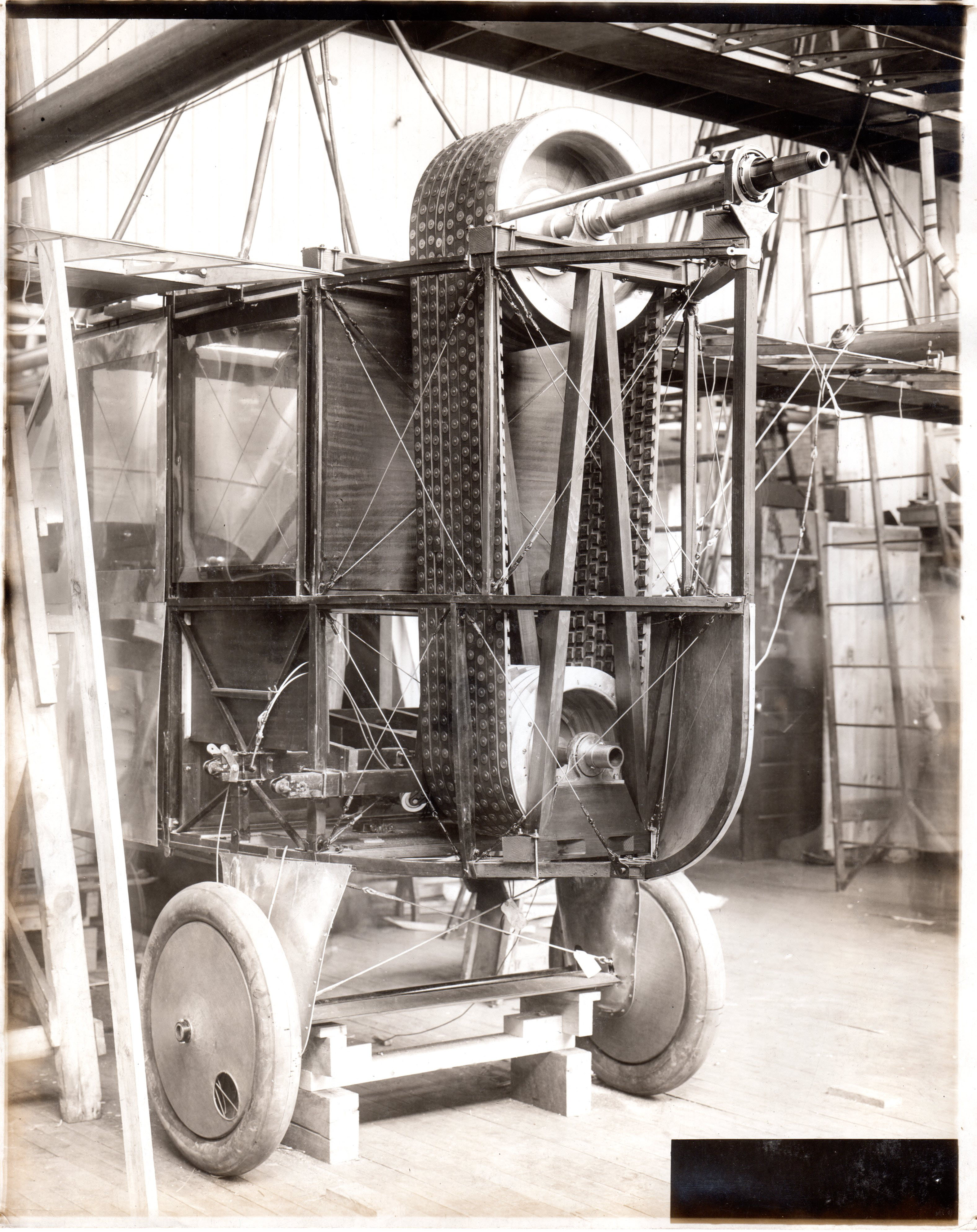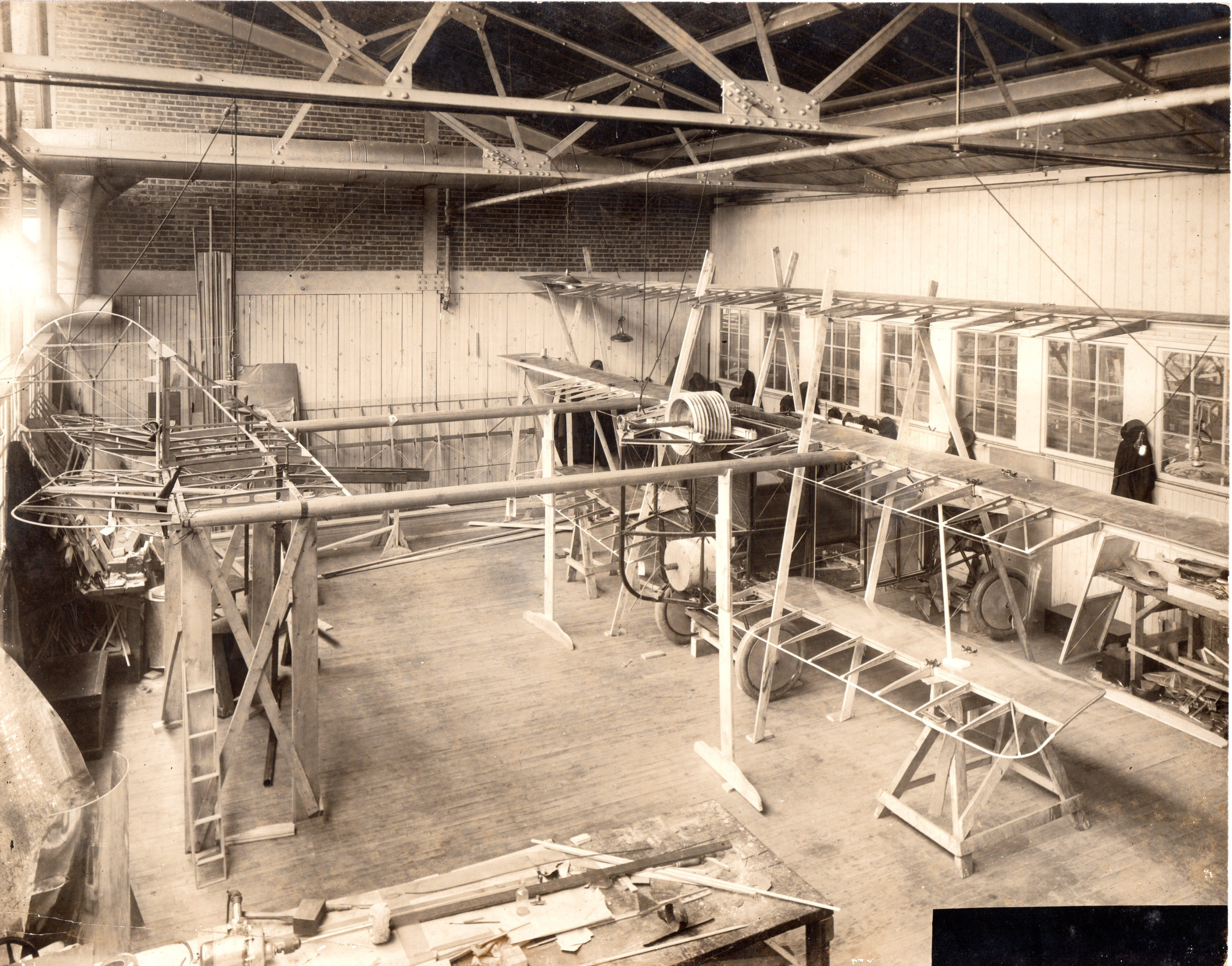 That view down into the factory appears to have been taken from the balcony at the east end of the second story pass-through, visible in the Panchyk pic, between Engineering and the plant. Does anyone know if it was there in 1917? It was still there when I worked in the building ca. 1956. As I’ve noted before, the outline of the south side of the throat of the Curtiss wind tunnel was still visible in the inner south wall then. Wonder if that’s still in here and could be rescued? Sam (I’m soooo old - - - ), III :ยท)