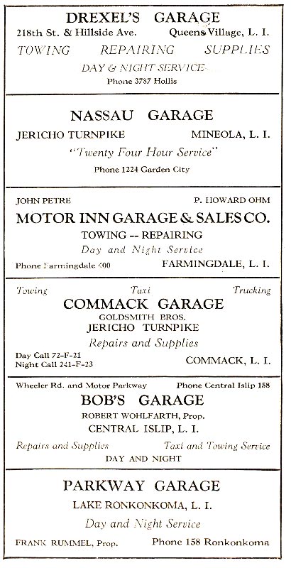 No luck yet finding photos of Commack Garage and Motor Inn Garage, but the articles below describe Commack Garage at the corner of Babylon ( Commack ) Rd & Jericho Tpke; so located west of the Commack Spur. Then a reference to the Motor Inn Garage and Motor Pkwy.