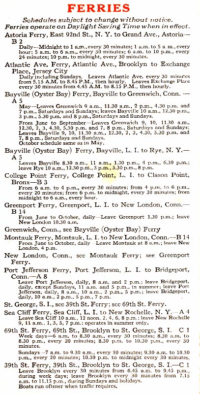 The 14 ferry routes of Long Island in 1929.