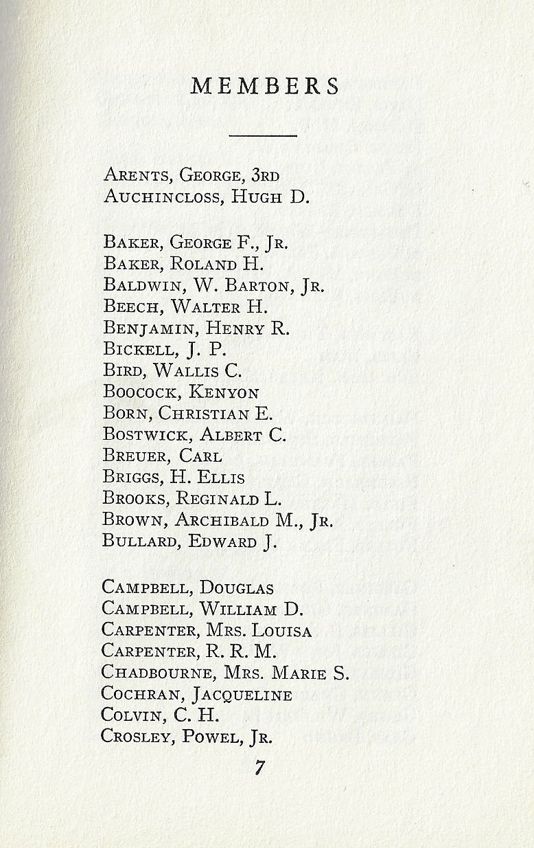 In response to Dr. Landdeck's request I provided her copies of the following membership list. Dr, Landdeck kindly provided a brief summary of several of the elite members.