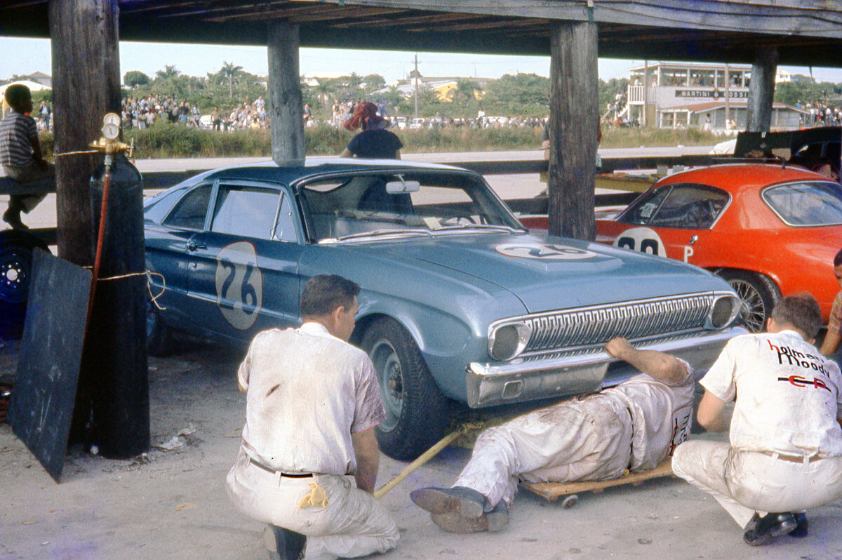 The one-of-a-kind Challenger III made its racing debut at the 9th Annual International Bahamas Speed Weeks held from December 2 to December 10, 1962. The humble Falcon was seen battling Jaguars, Cobras and Ferraris. The driver was Marvin Panch, a NASCAR race driver who often drove for Holman Moody on ovals and road course. Running as #26, Challenger III competed in five races but suffered mechanical problems related to the course.