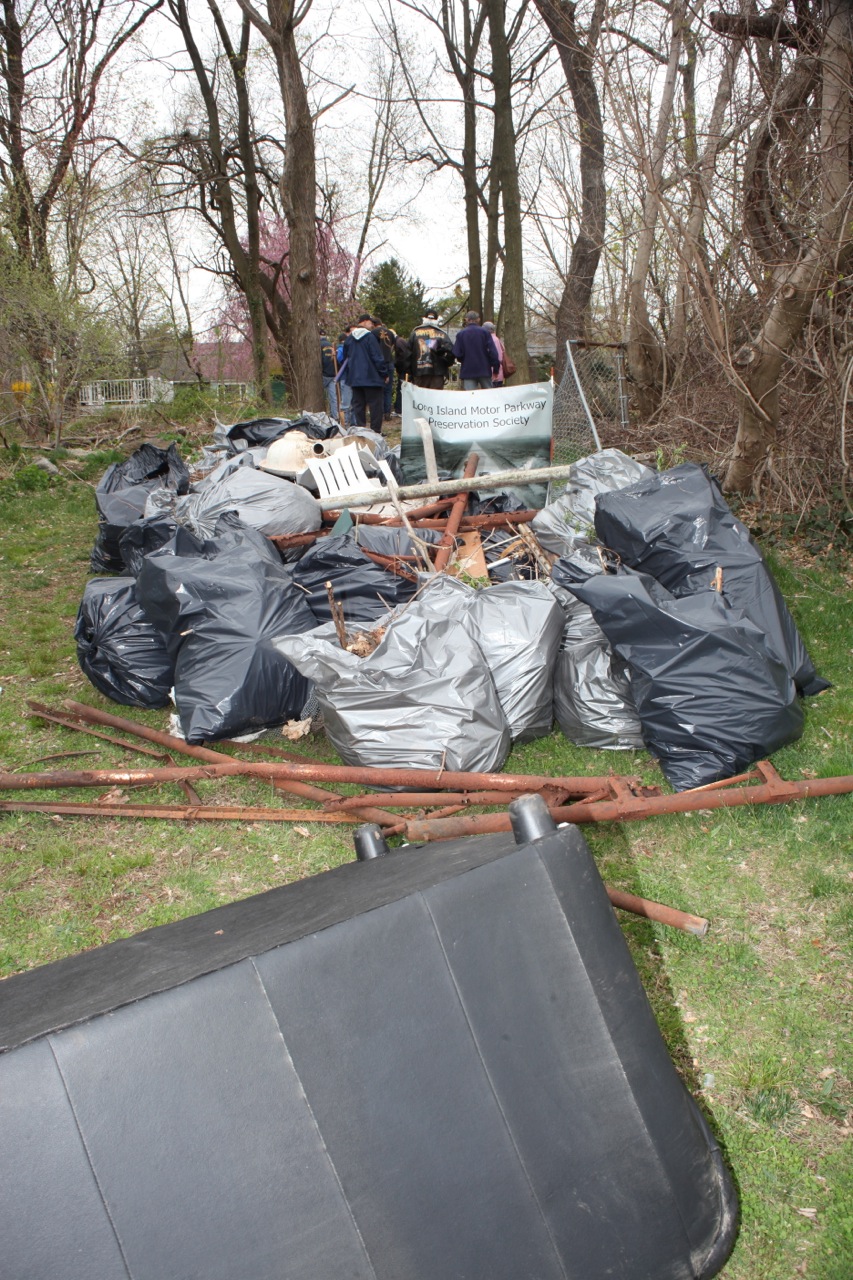 Among the groups participating were; the Long Island Motor Parkway Preservation Society, the Buddist Tzu Chi Foundation USA Long Island Branch, school children and local residents. Over 25 bags of trash, two fallen trees and a couch were removed from the Motor Parkway.