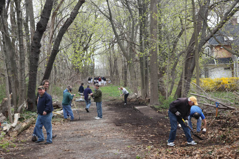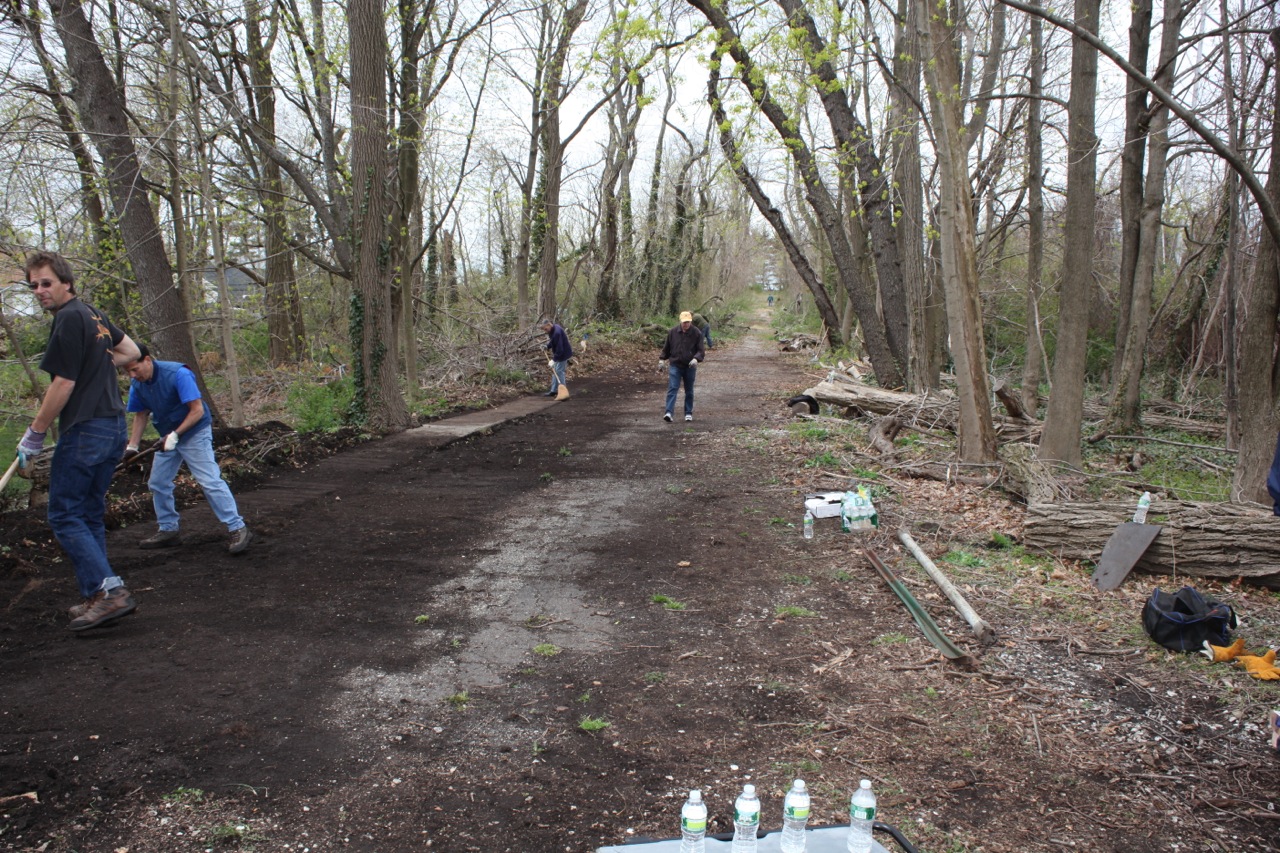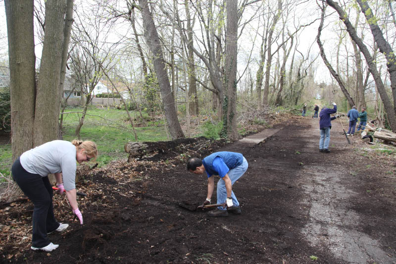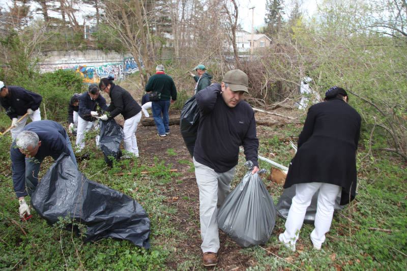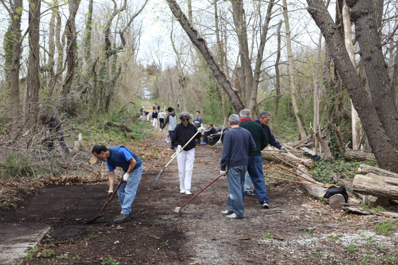 As part of the Town of North Hempstead Earth Day Celebration, over 40 people cleaned the historic Motor Parkway section in East Williston between Roslyn Road and the Oyster Bay LIRR tracks. The Community Clean-Up was organized by John Darcy, Commissioner of Community Services, and approved by Councilman Thomas Dwyer.
