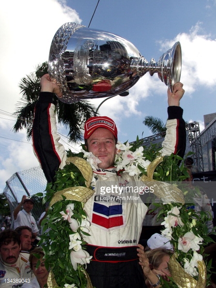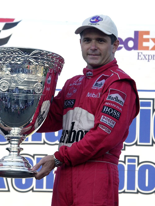 Cristiano da Matta holds the Vanderbilt Cup after winning  in 2002. Coutesy of Gettyimages.