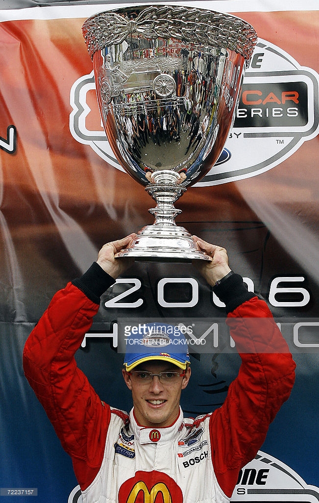 World Champion Sebastien Bourdais of France holds the Vanderbilt Cup aloft after placing eighth in the Indy 300 race in Surfers Paradise on Australia's Gold Coast, 22 October 2006. Bourdais won enough points to secure a record third straight world championship title. AFP PHOTO/Torsten BLACKWOOD
