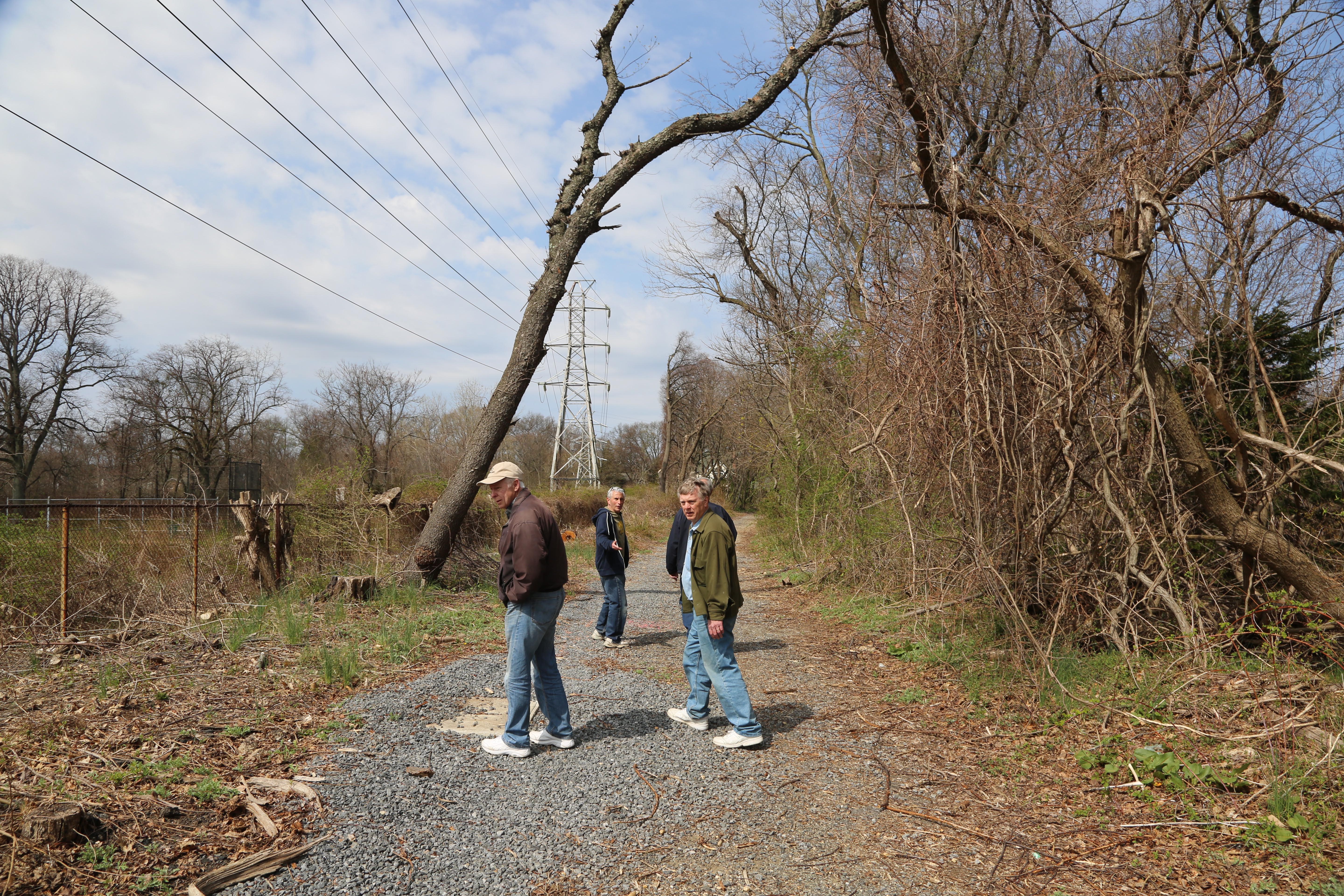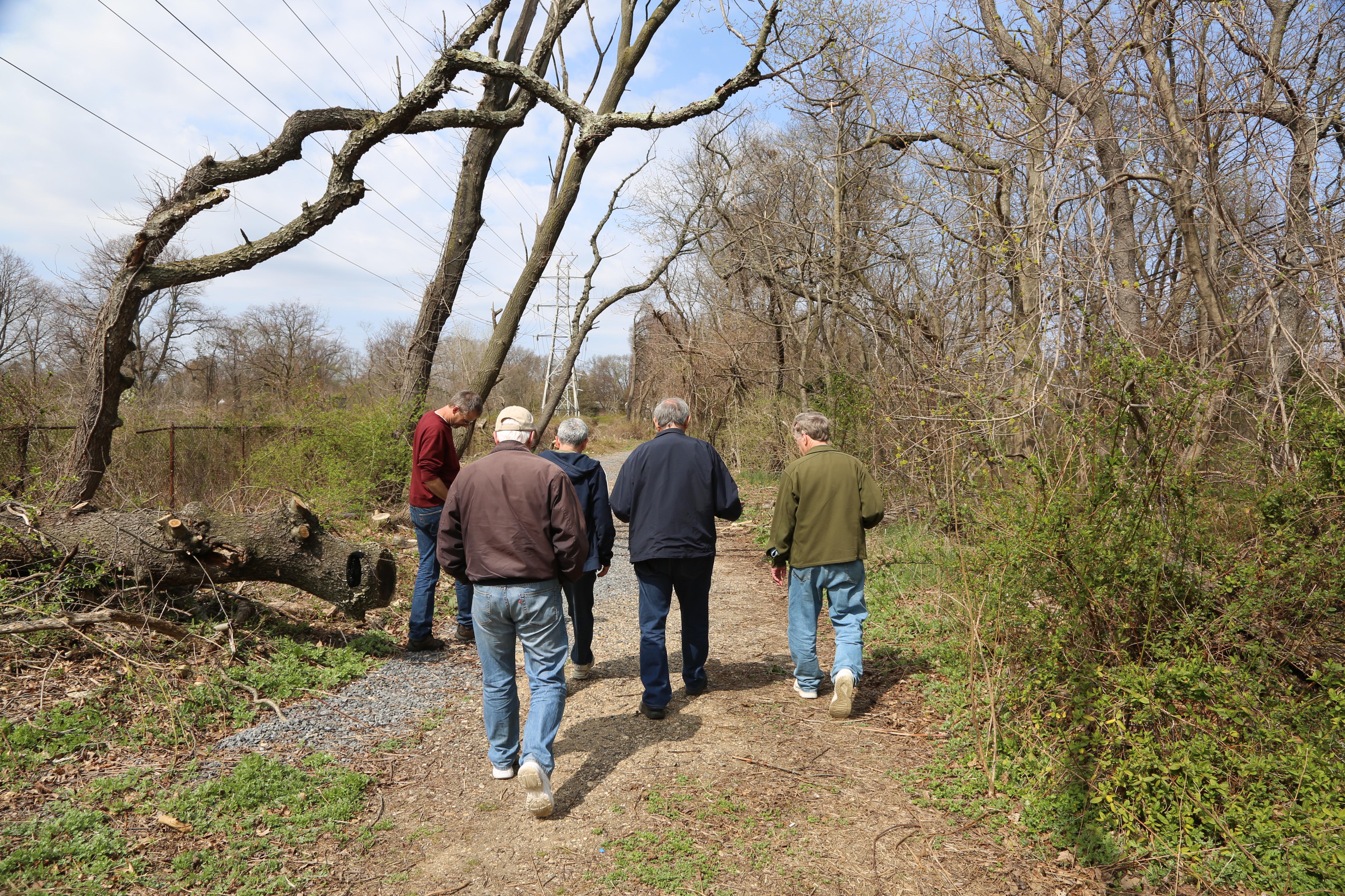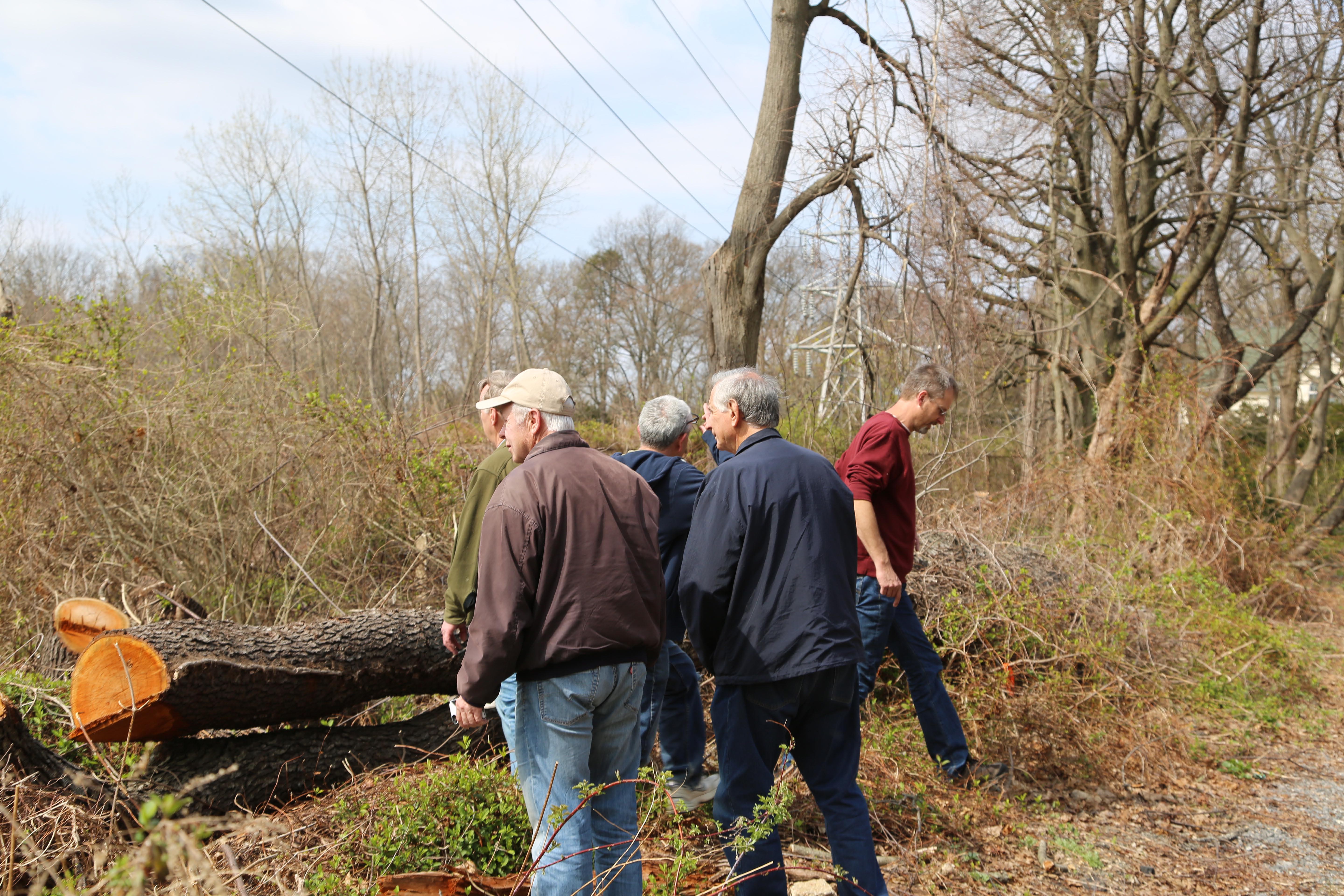 Sam Berliner III and Al Velocci with original cedar posts in the Battle Row Campgrounds in Old Bethpage.