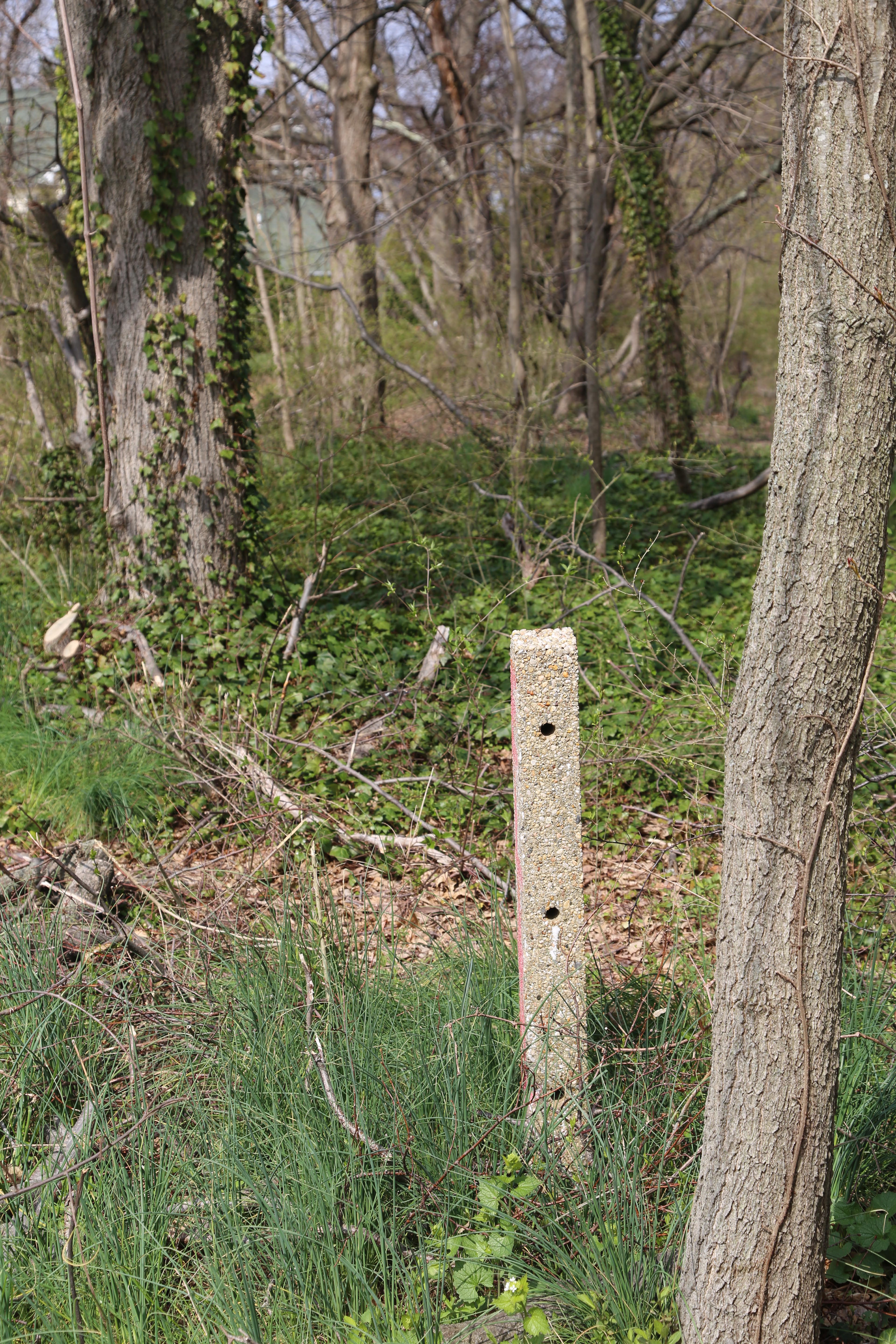 Being that most cedar trees are naturally resistant to decay and insects, that’s probably why this type of wood was used as the original boundary posts. The older linemen I used to work along with said that LILCO originally purchased wood poles made from cedar for that exact reason. Wood poles today are basically made from common pine trees, and saturated with preservatives. Still looking for that house with the concrete posts, thanks for the extra hints.