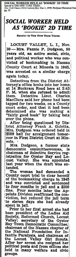 See the article about Fannie Dudgeon - quite an interesting person - a bookie arrested twice!